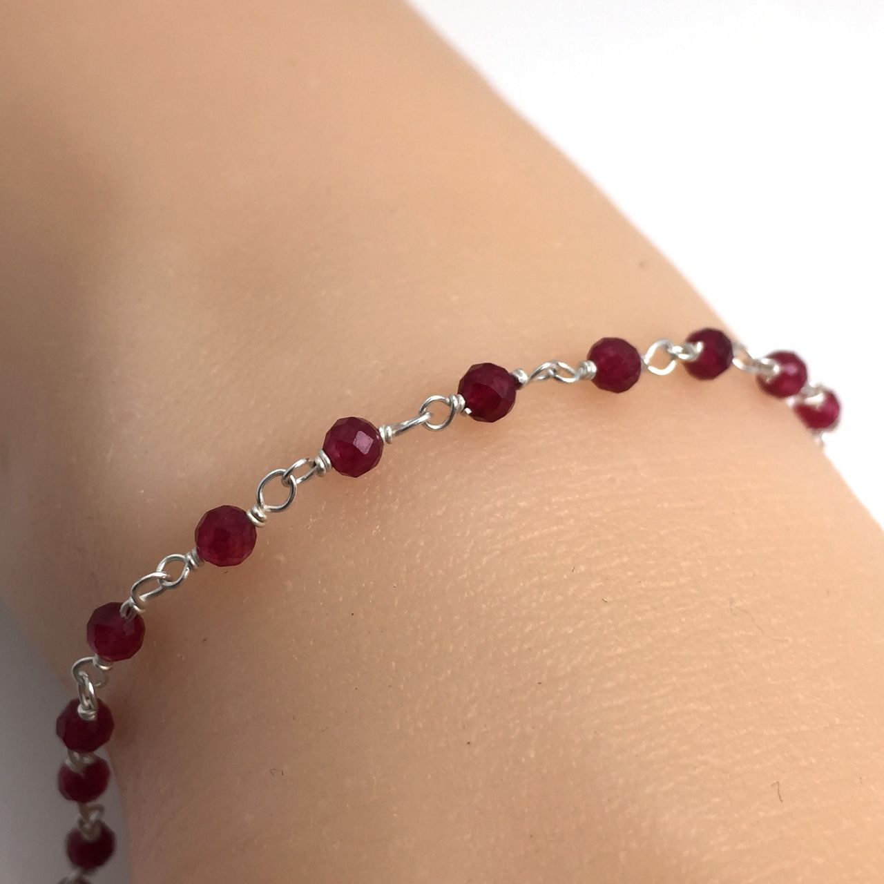 Style: Handcrafted gemstone rosary chain by the footStone: Lab grow RubyStone size: approx. 3mmMetal: Solid 925 sterling silver