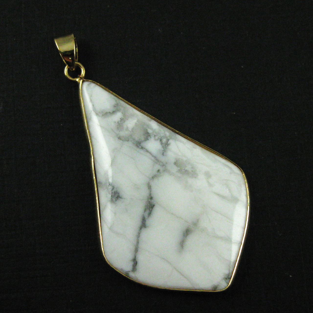 Stone: White TurquoiseType: Long Diamond Shape PendantBail: 24K Gold plated brass, 8.5mmShape: Long diamond shapeMeasurement: Approximately 56mm (including bail) long, 30 mm wide by 4-5 mm thick,Weight: Approximately 8-9 grams per piece.Quantity: 1 pendant