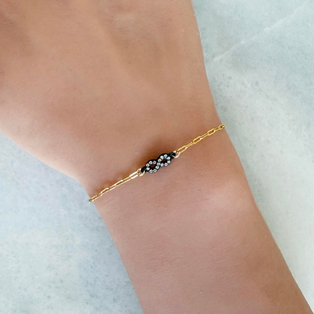 Style: Small Paperclip Chain with CZ Infinity Connector