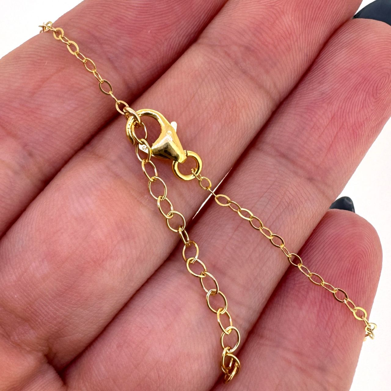 Add to compare list Gold over Sterling Silver Finished Chain - Tiny Plain Oval Cable Chain 16" -36" SKU : 601009-VM Length is 16, 18 or 20 inches Machine made. All other lengths are handmade with tubes. Log In for Wholesale Prices