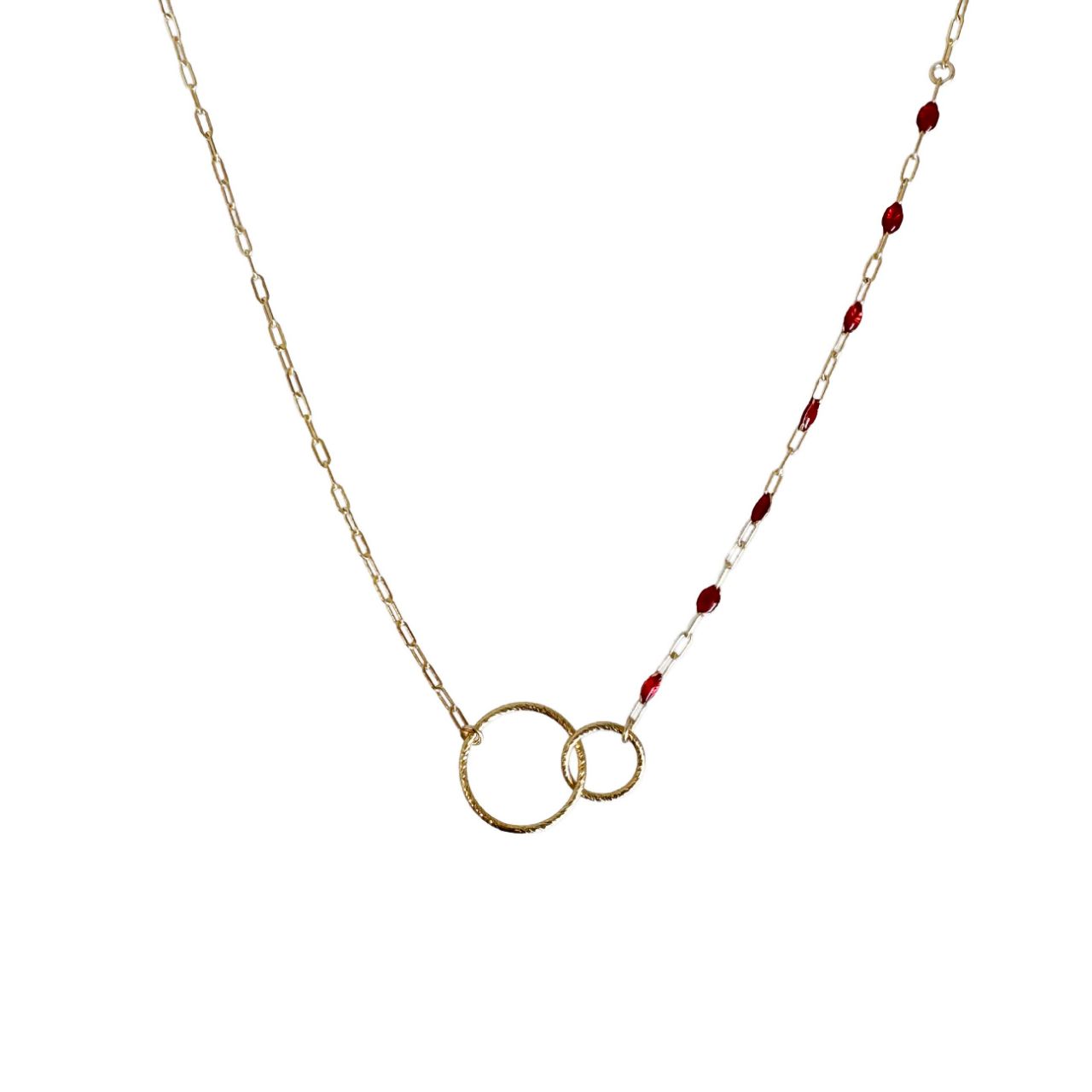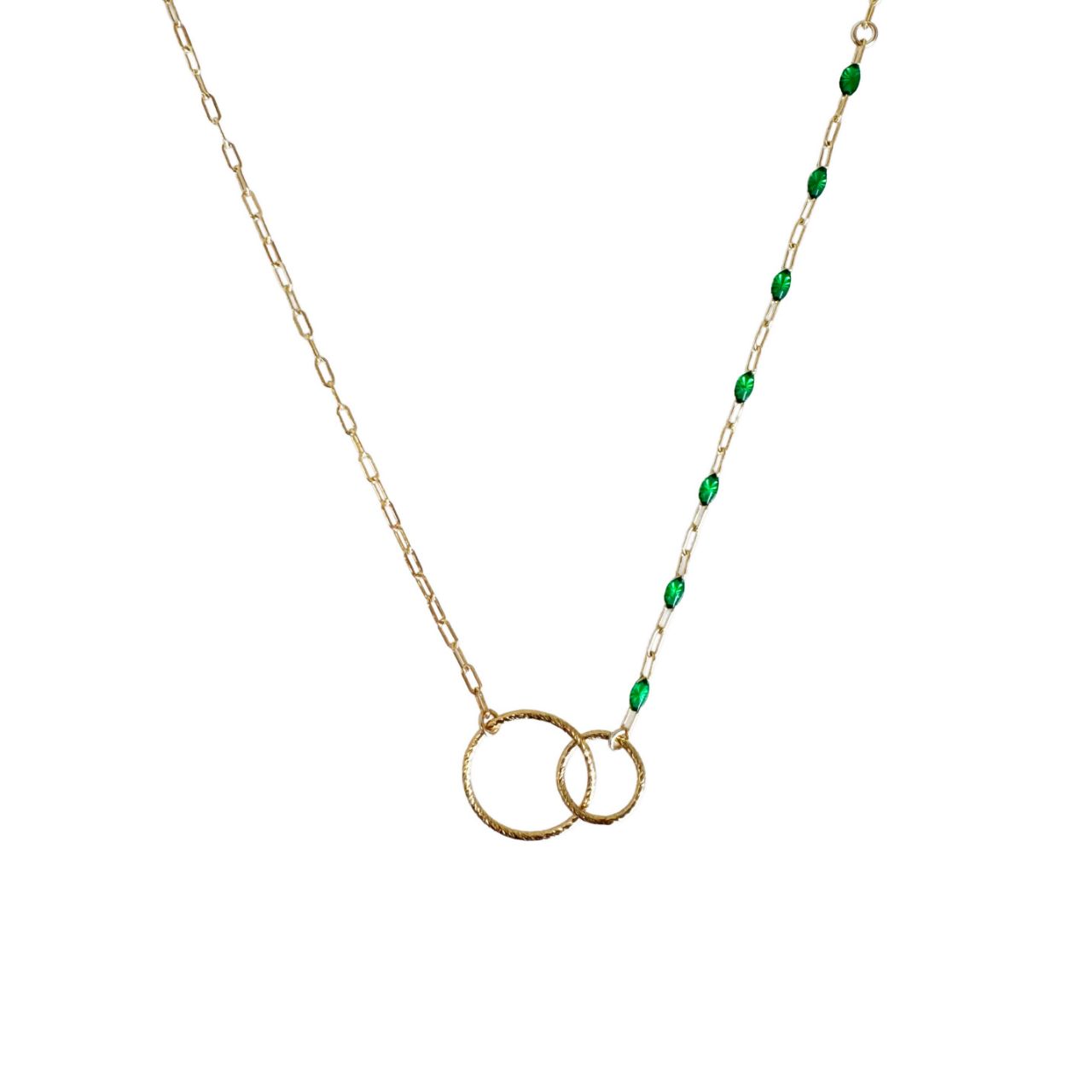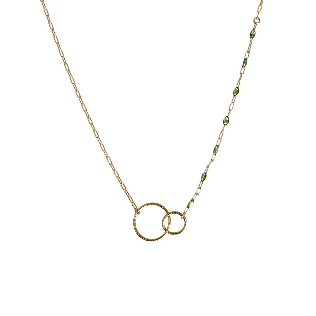 Style: Paperclip Chain with Interlocking Circles Charm and Birthstone Enamel Chain Accent