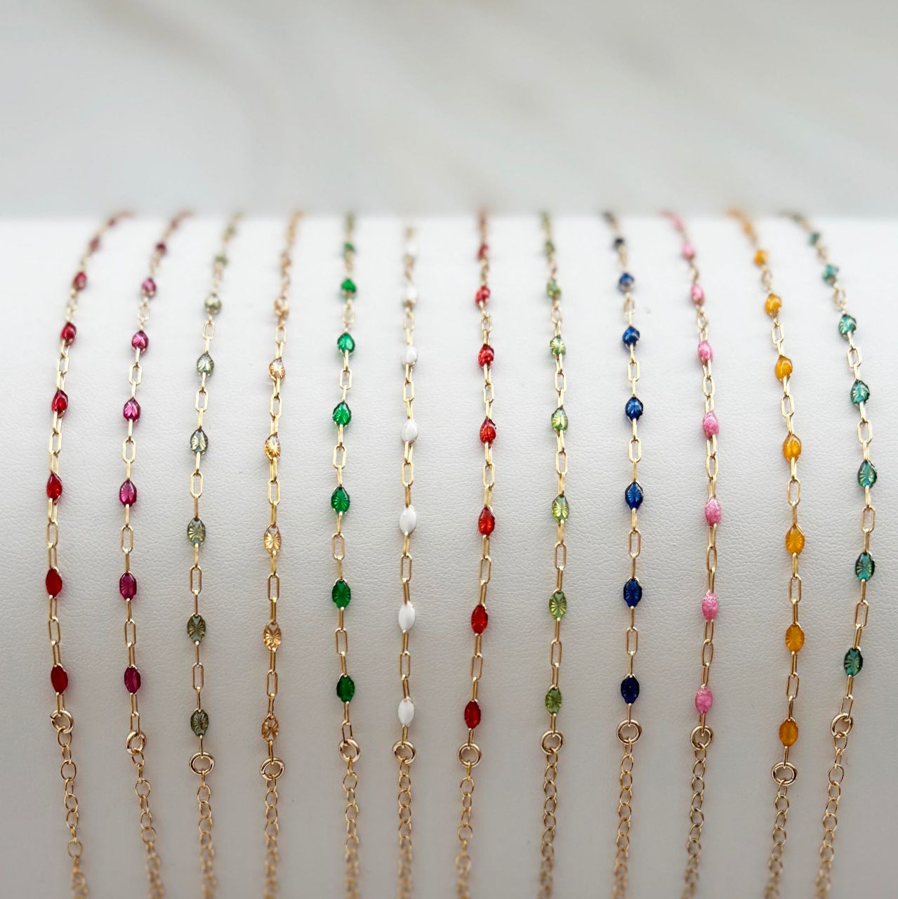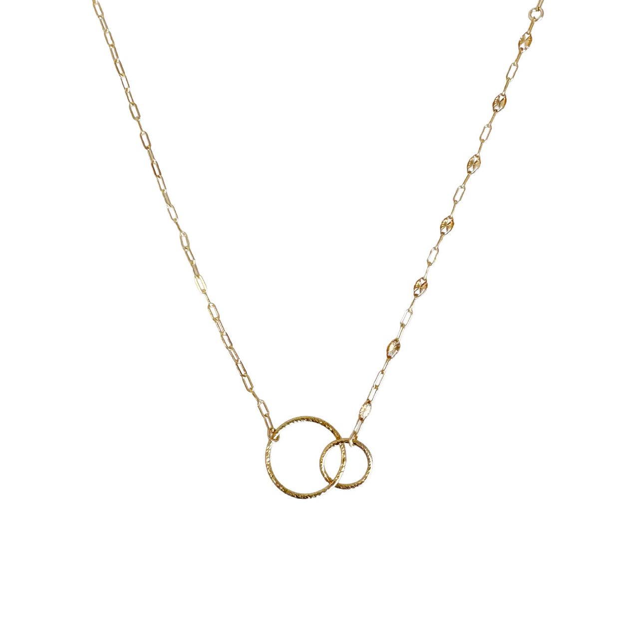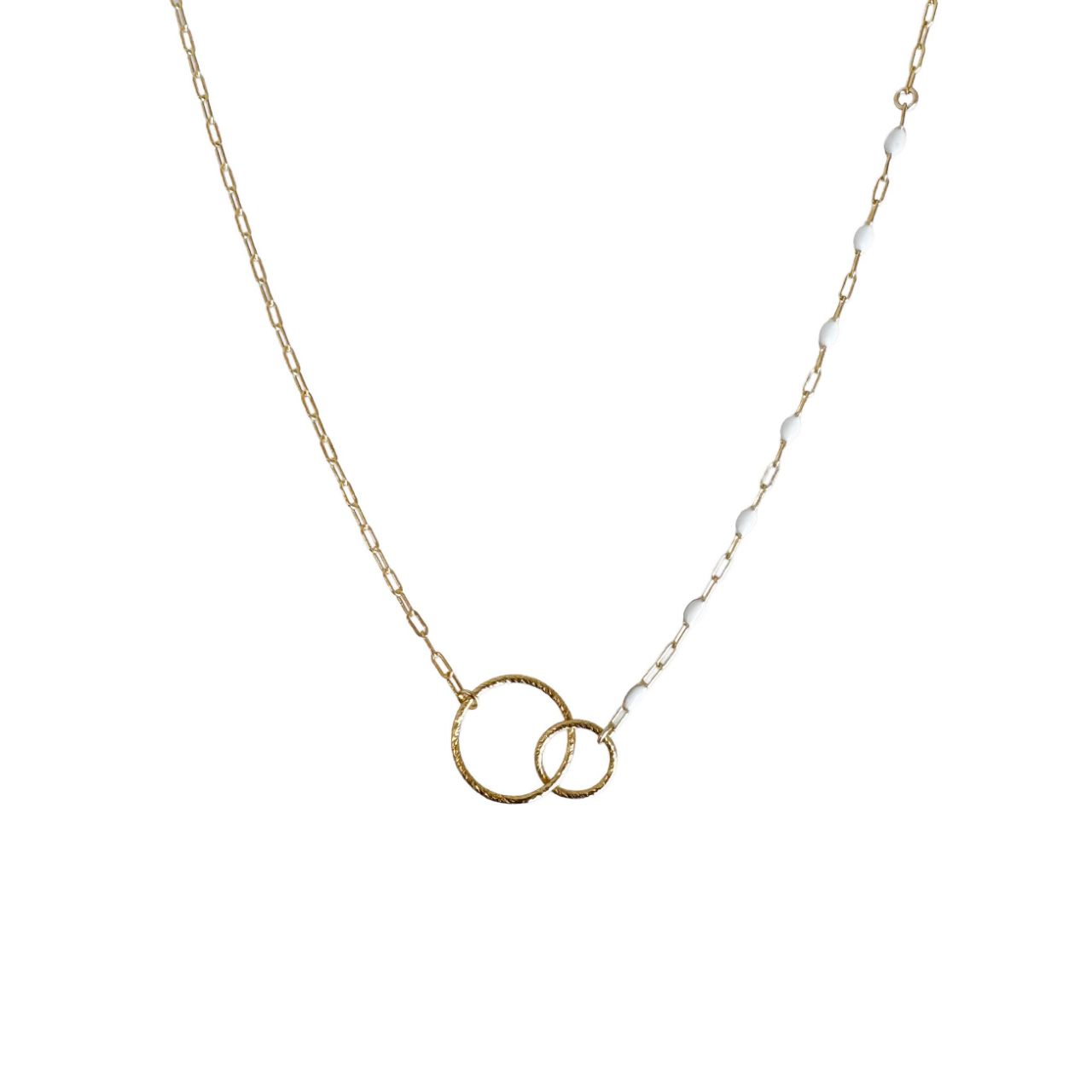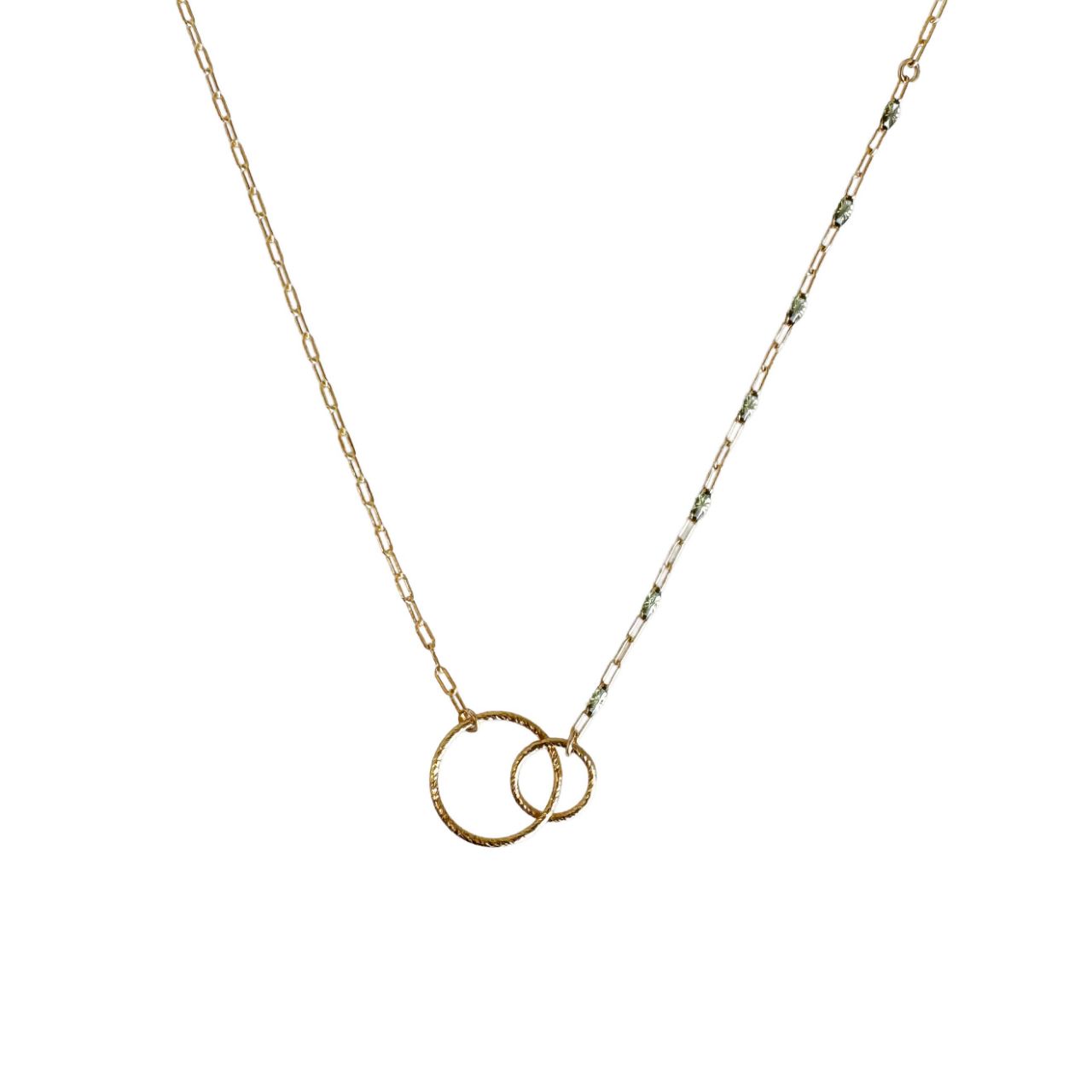 Style: Paperclip Chain with Interlocking Circles Charm and Birthstone Enamel Chain Accent