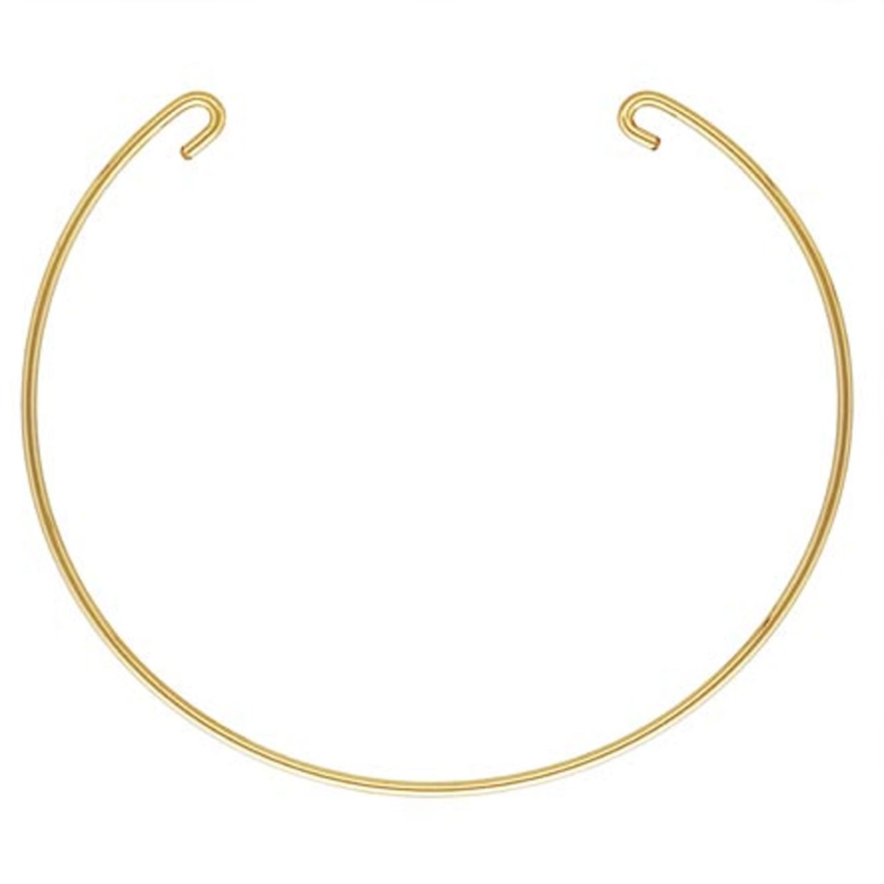 Material: 14K Gold Filled Smooth WireShape: Round bangle with two open, inward-facing hooks at each endMeasurement: Wire length - 7 inches, Wire Diameter - 1.27mm (.05")Quantity: 1 piece The opening with the hooks allows you to add or change connectors to complete the bracelet look.