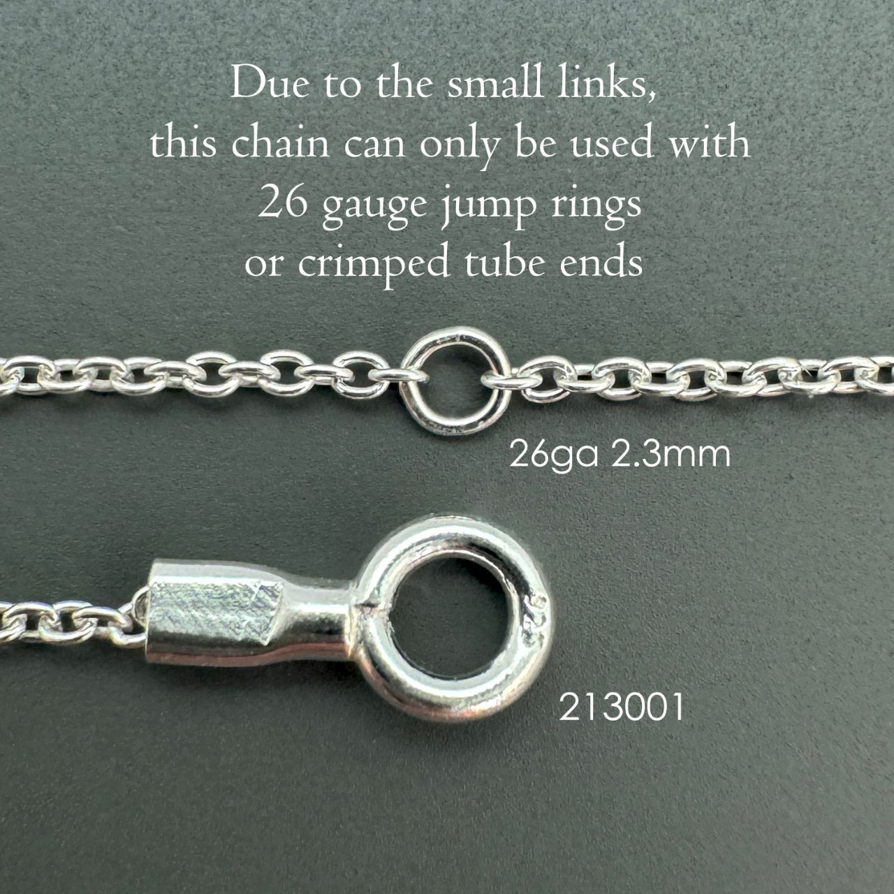 Add to compare list Oxidized 925 Sterling Silver Tiny Plain Cable Chain - Unfinished Bulk Chain (sold per foot) SKU : 101009-OX OD-0.9mm wide x1.3mm long 33 links per inch Log In for Wholesale Prices