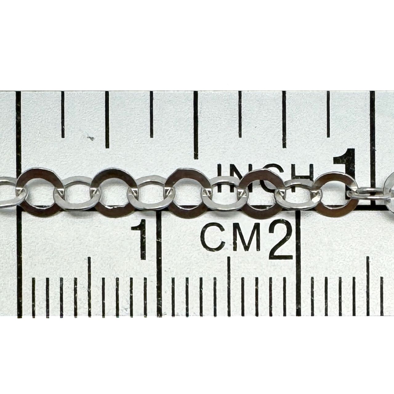 Best Seller Add to compare list Sterling Silver Bulk Chain - 1.5x2mm Small Flat Cable Chain (sold per foot) SKU : 101021 OD-2mm long by 1.5mm wide 17 links per inch Log In for Wholesale Prices