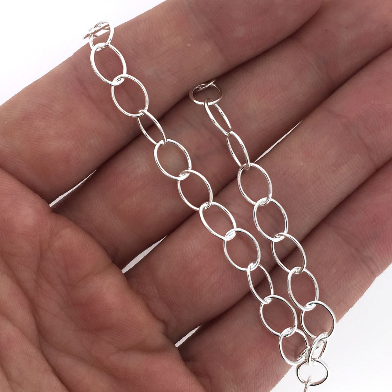 Add to compare list Sterling Silver Finished Chain - Large Oval Cable Chain SKU : 601046 Lengths: 7" - 36", links are 8 x 6mm Log In for Wholesale Prices