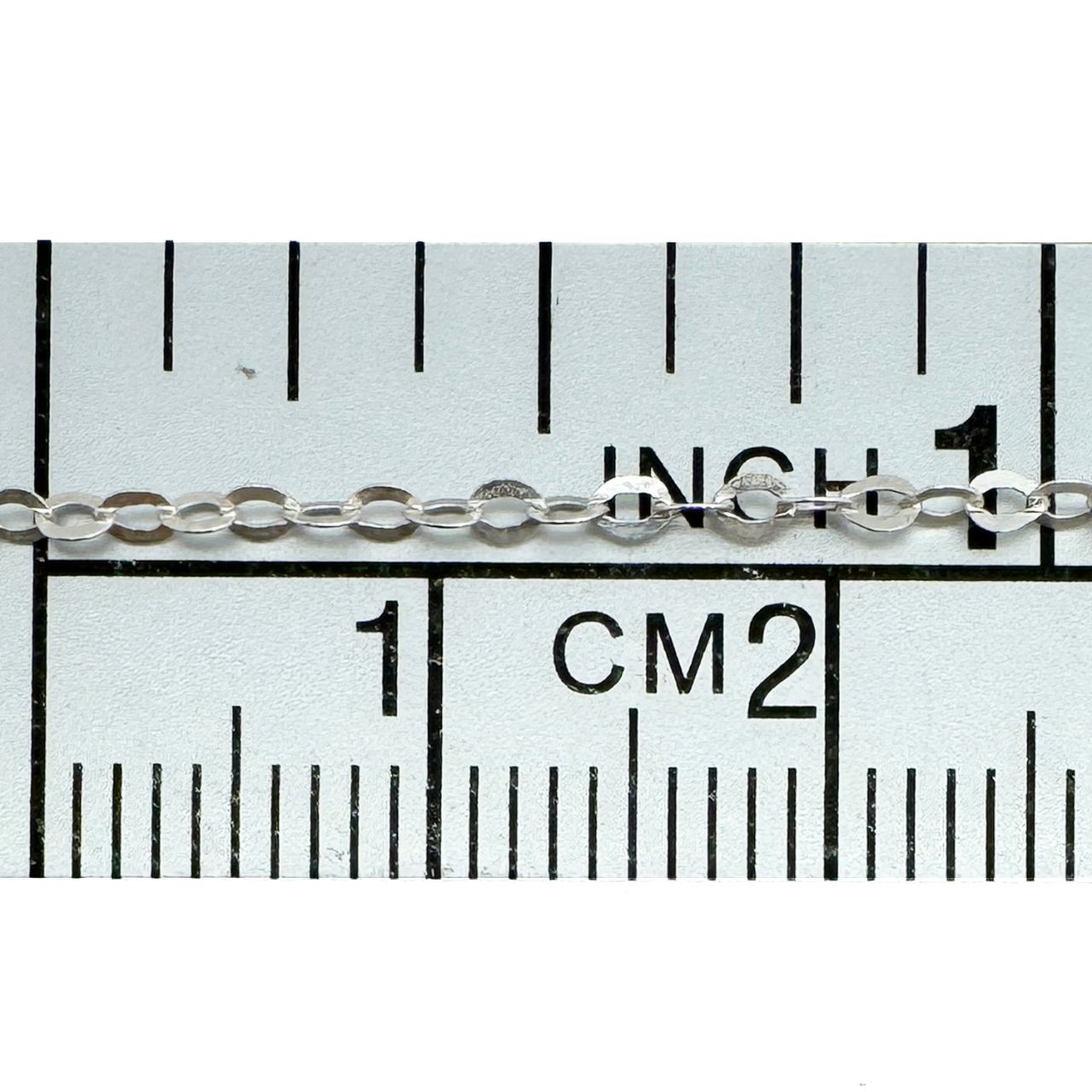 Best Seller Add to compare list Rhodium Plated Sterling Silver Bulk Chain - 1.5x2mm Small Flat Cable Chain (sold per foot) SKU : 101021-RH OD-2mm long by 1.5mm wide 17 links per inch Log In for Wholesale Prices