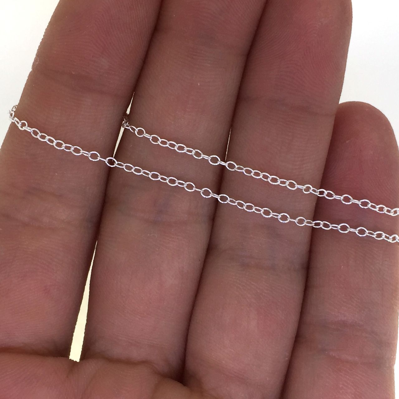 Add to compare list 925 Sterling Silver Finished Chain - Oval Cable Chain SKU : 601020 Lengths: 7" - 36" Oval link is 2mm x 1.5mm Log In for Wholesale Prices