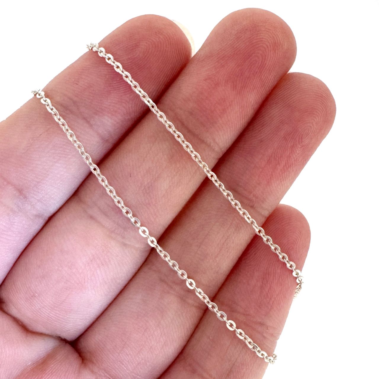 Add to compare list 925 Italian Sterling Silver Finished Chain - Solid Oval Cable Chain SKU : 601029 Lengths: 7" - 36" link is 1.7mm by 1.3mm Log In for Wholesale Prices