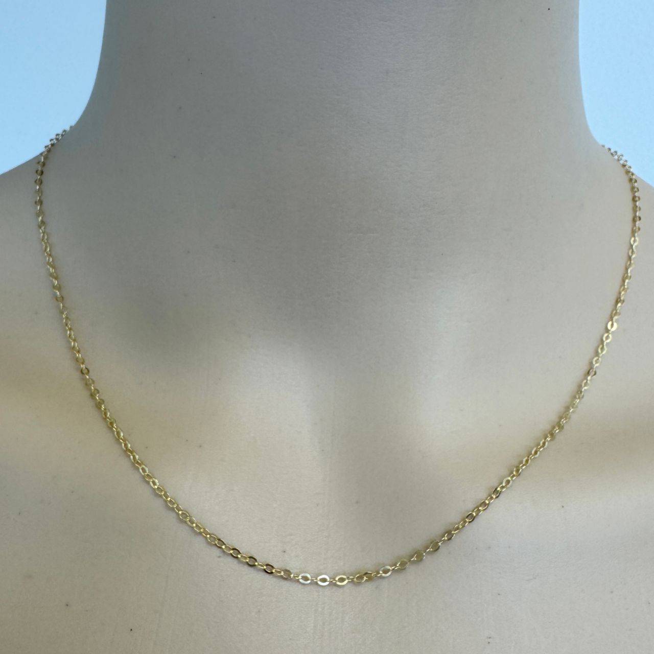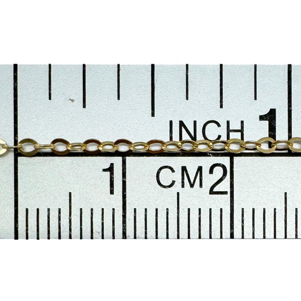 Add to compare list 1/20 14K Gold Filled Bulk Chain - 1.5x 2mm Small Flat Cable Chain (sold per foot) SKU : 101021-GF OD-2mm long by 1.5mm wide 17 links per inch Log In for Wholesale Prices