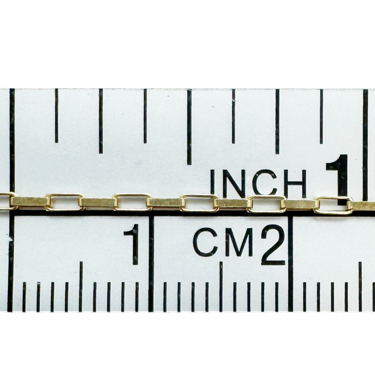 Add to compare list 1/20 14K Gold Filled Bulk Chain - 3mm x 1.5mm Small Long Box Chain (sold per foot) SKU : 101011GF 10.5 links per inch Log In for Wholesale Prices