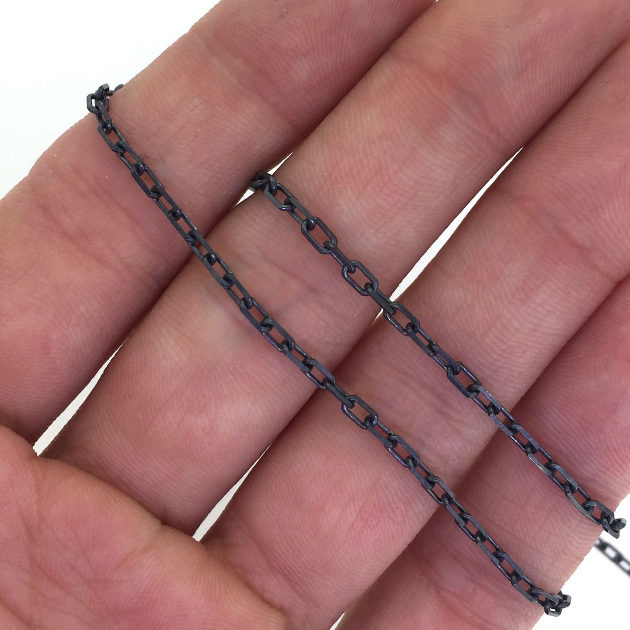 Add to compare list Oxidized Sterling Silver Finished Chain - 3.8mm Diamond Cut Box Chain SKU : 601041-OX Lengths: 7" - 36", links are 3.8mm long and 2.1mm wide Log In for Wholesale Prices