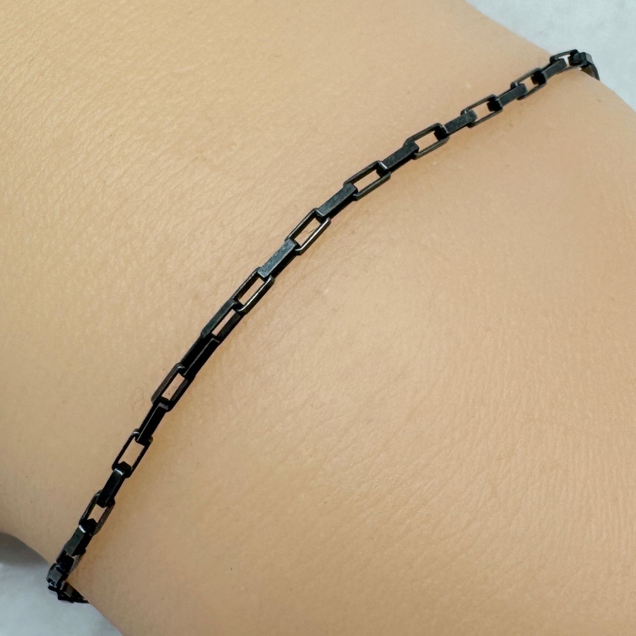 Add to compare list Oxidized Sterling Silver Finished Chain - Small Box Chain SKU : 601011-OX Lengths: 7" - 36" Links are 2.9x1.3mm Log In for Wholesale Prices