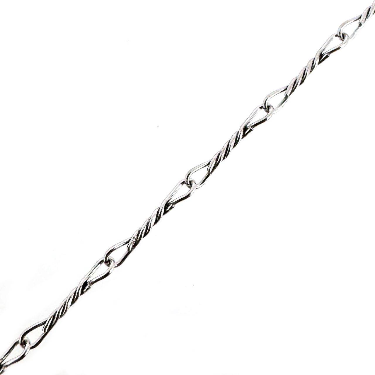 Add to compare list Rhodium Plated 925 Sterling Silver Finished Chain - Fancy Twisted Link SKU : 601007-RH Lengths: 9.5" - 40" 6.7mm by 1mm twisted link Log In for Wholesale Prices