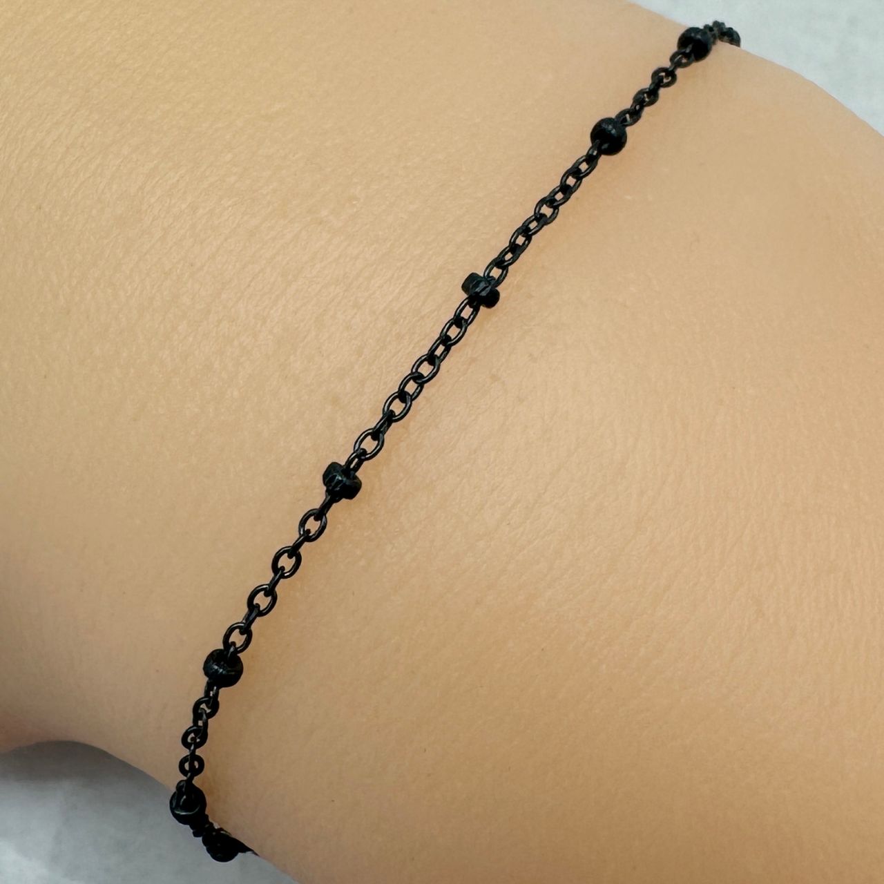 Add to compare list Oxidized Sterling Silver Finished Chain - Cable Beaded Satellite Chain SKU : 601006-OX Lengths: 7.5" - 36", links are 1.02mm by 1.2mm, ball is 1.73mm Log In for Wholesale Prices