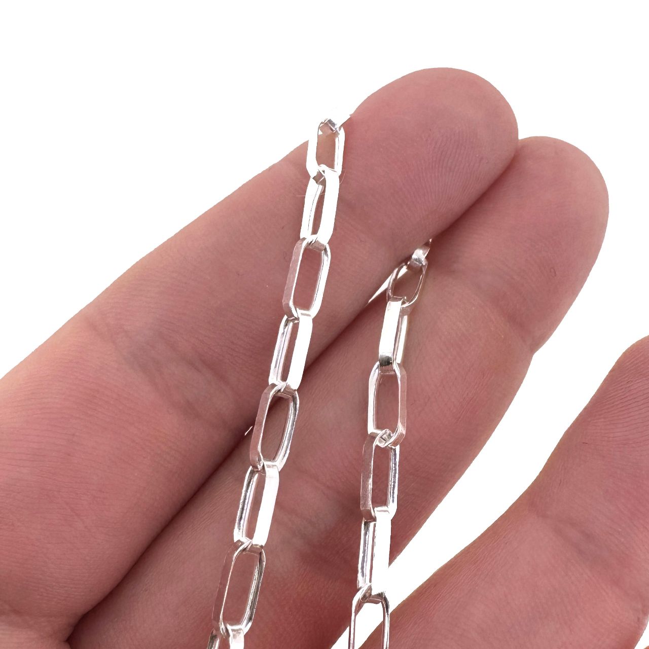 Add to compare list Sterling Silver Finished Chain - Big Flat Oval Rolo Chain SKU : 601039 Lengths: 7" - 36", links are 7.5mm long by 3.5mm wide Log In for Wholesale Prices