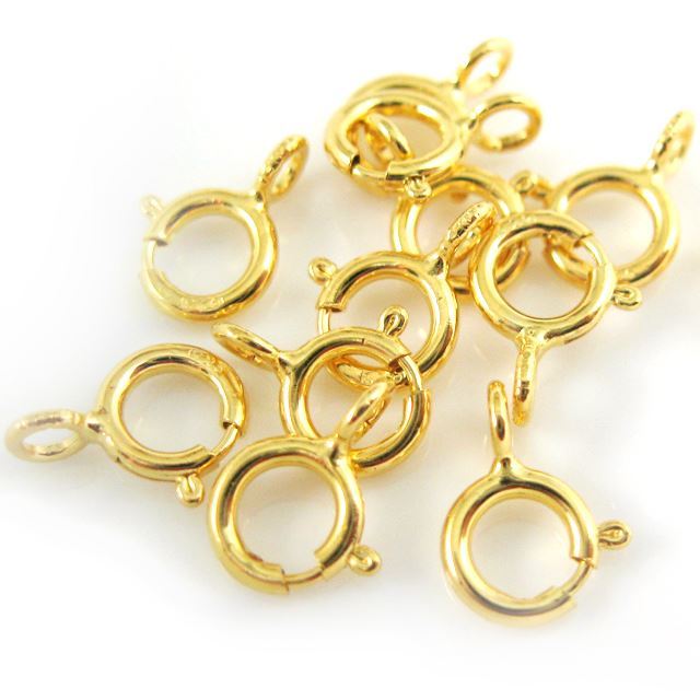 Material: 22k gold over 925 sterling silverShape: Spring ring clasps Component size: The ring size is 5.5mm, 8.5mm with open ring. NOTES: Pictures show the shape of the item, for actual size please see the measurement. Listing price is for pack of 5 pieces
