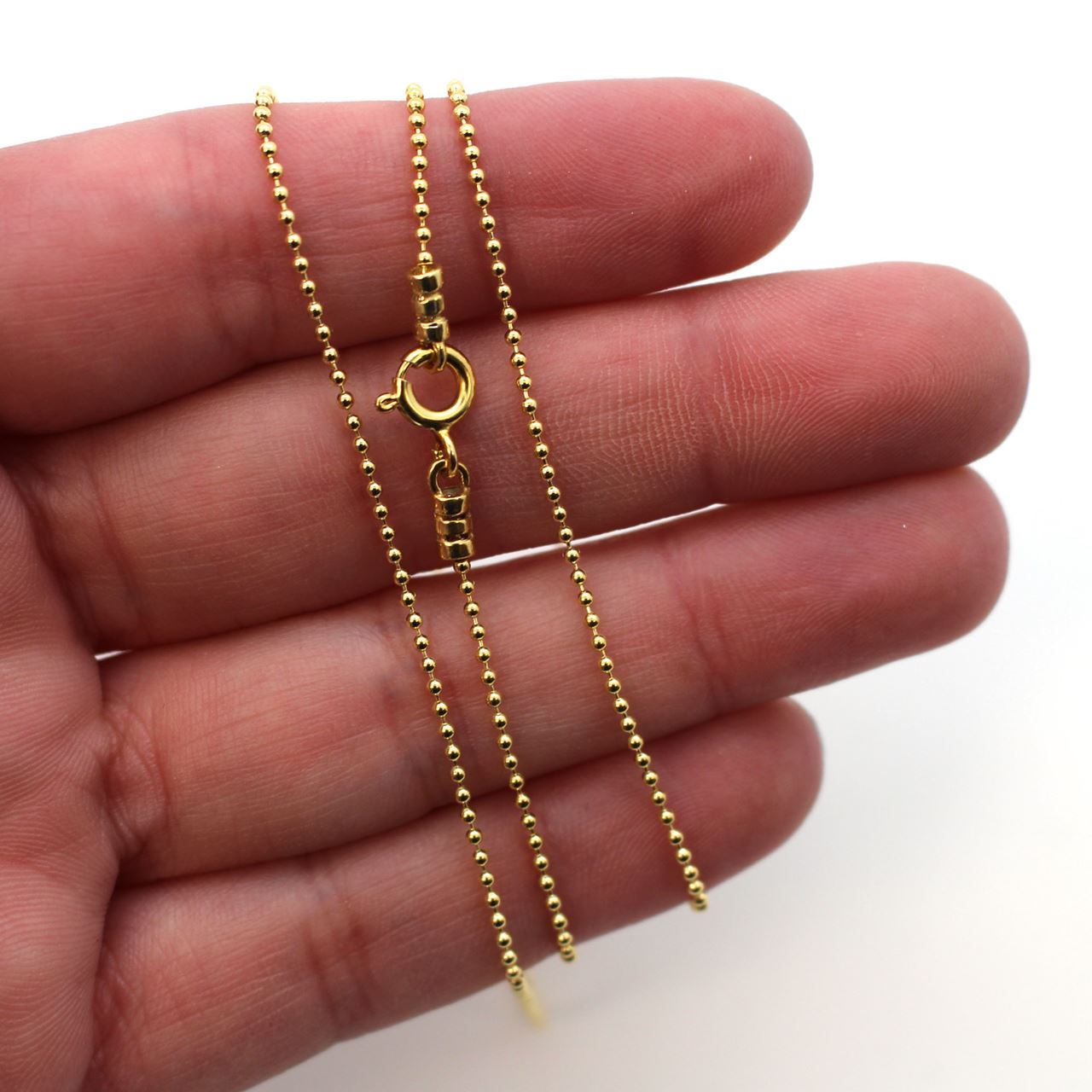 Add to compare list Sterling Silver Finished Chain - 1.1mm Beaded Ball Chain SKU : 601050 Lengths: 7" - 36" 1.1mm balls Log In for Wholesale Prices