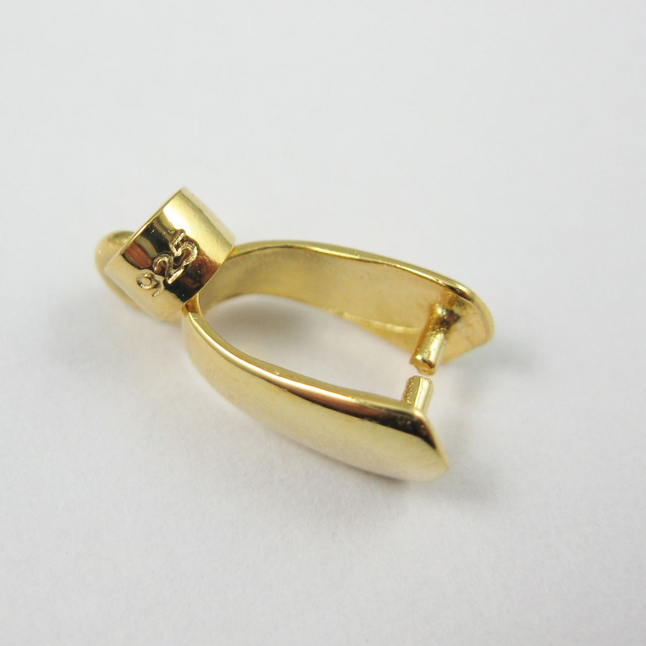 Material: 22k Gold over .925 Sterling Silver. Shape: Teardrop shape pinch bail. Smooth surface. "925" mark on the loopLength with Loop: 17.5mm Lengthwithout Loop: 10mmBail size: 3 *6MMClip size:7.5*12.5mmInner height:7mmWeight: 0.73 gram / piece