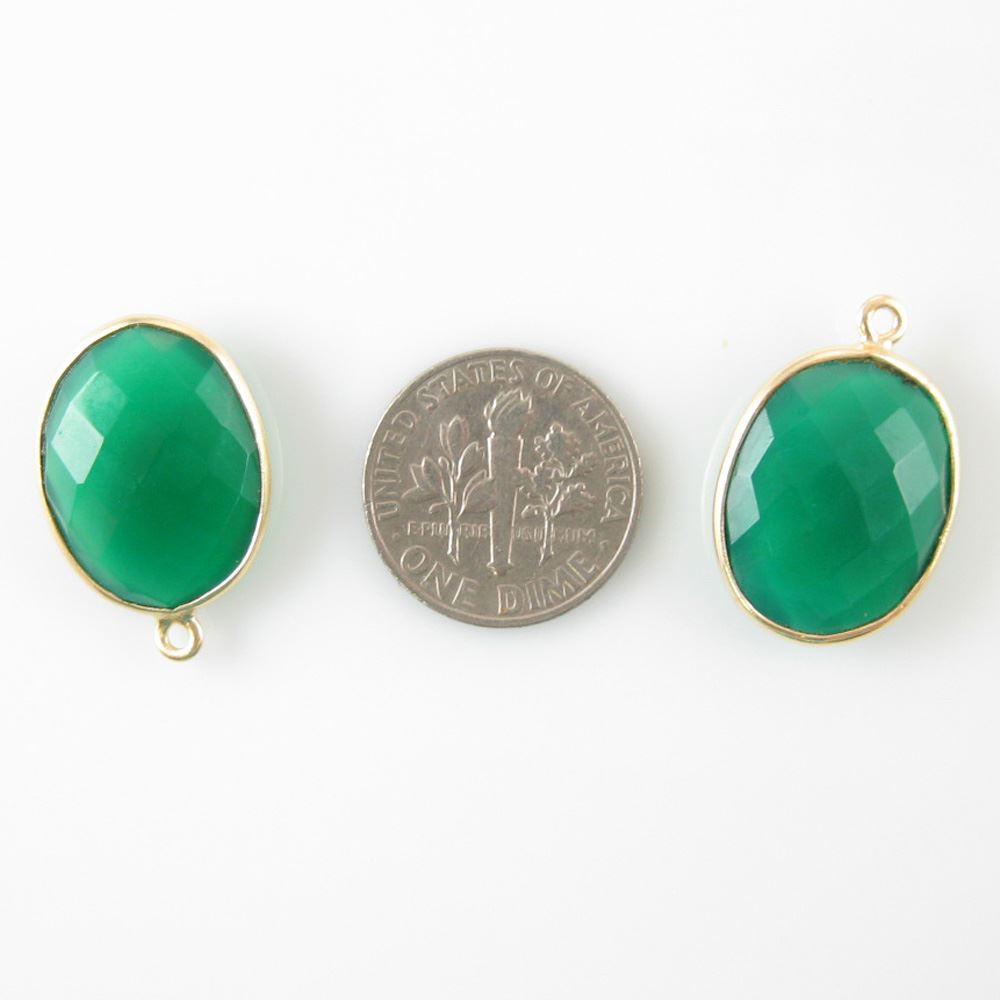 Bezel Gemstone Pendant - 14x18mm Faceted Oval - Green Onyx