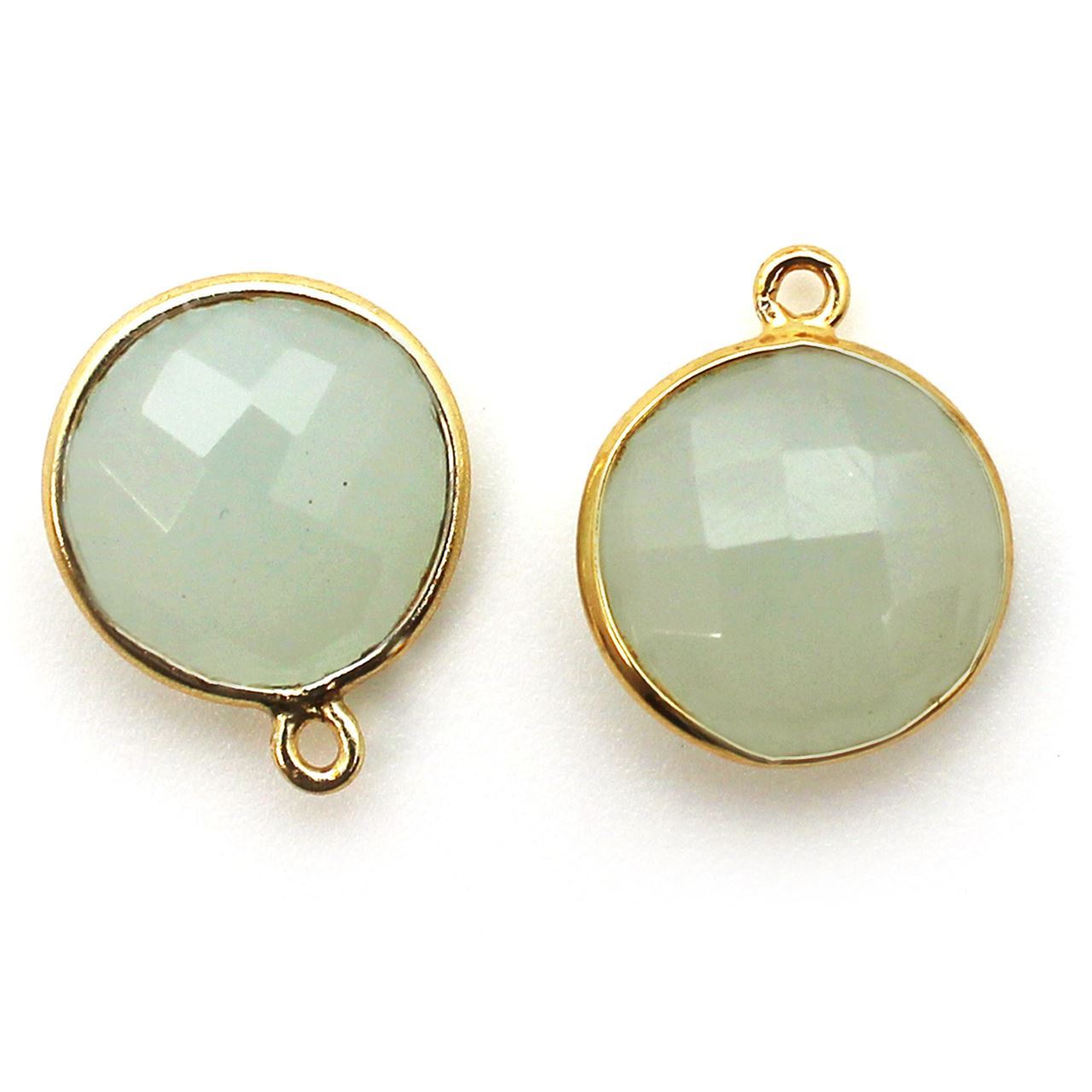 Add to compare list 18K Gold Over Sterling Silver Bezel Gemstone Pendant - 14mm Faceted Coin Shape - Pink Chalcedony SKU : 201102-PCH Log In for Wholesale Prices