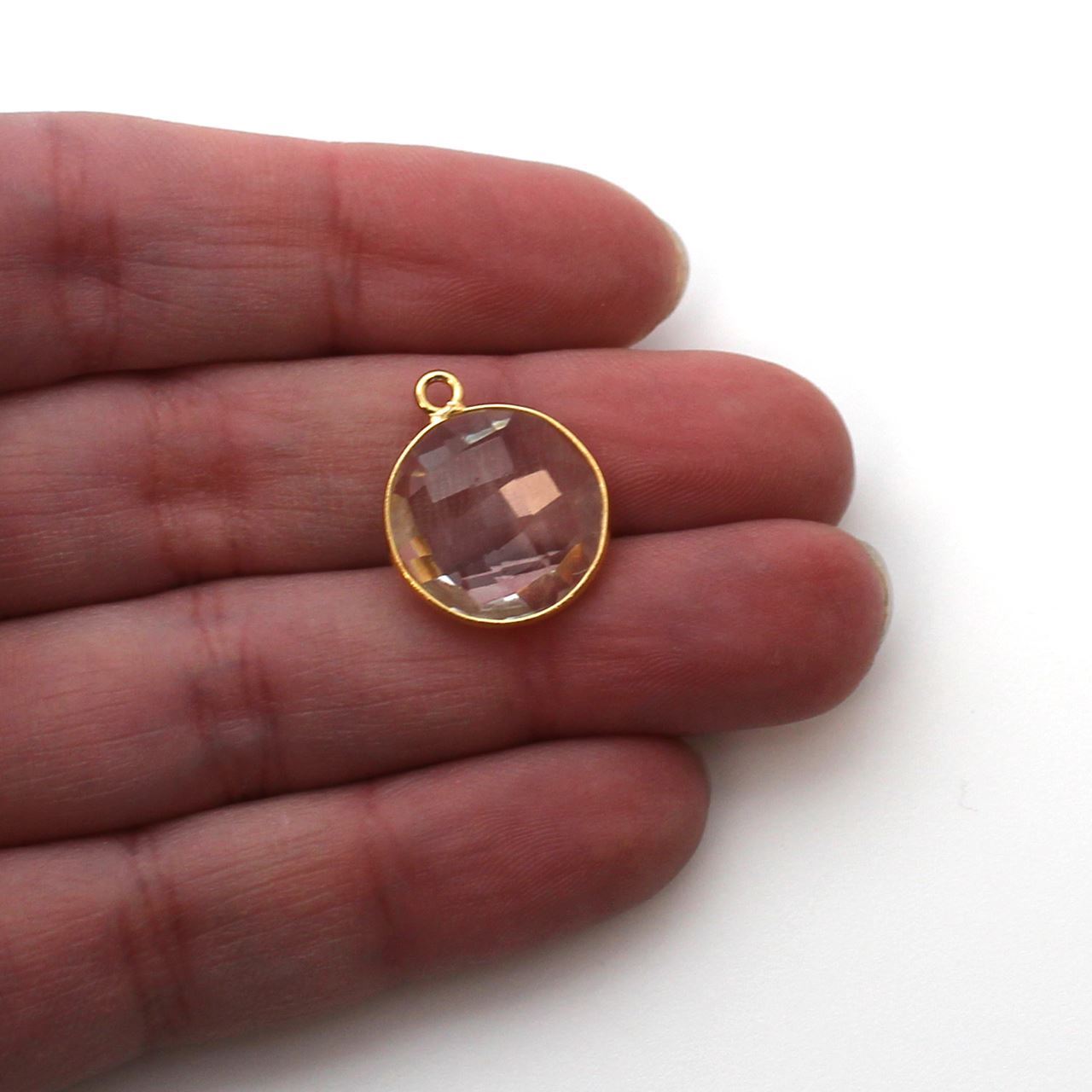 Add to compare list 18K Gold Over Sterling Silver Bezel Gemstone Pendant - 14mm Faceted Coin Shape - Aqua Quartz - March Birthstone SKU : 201102-AQR Log In for Wholesale Prices