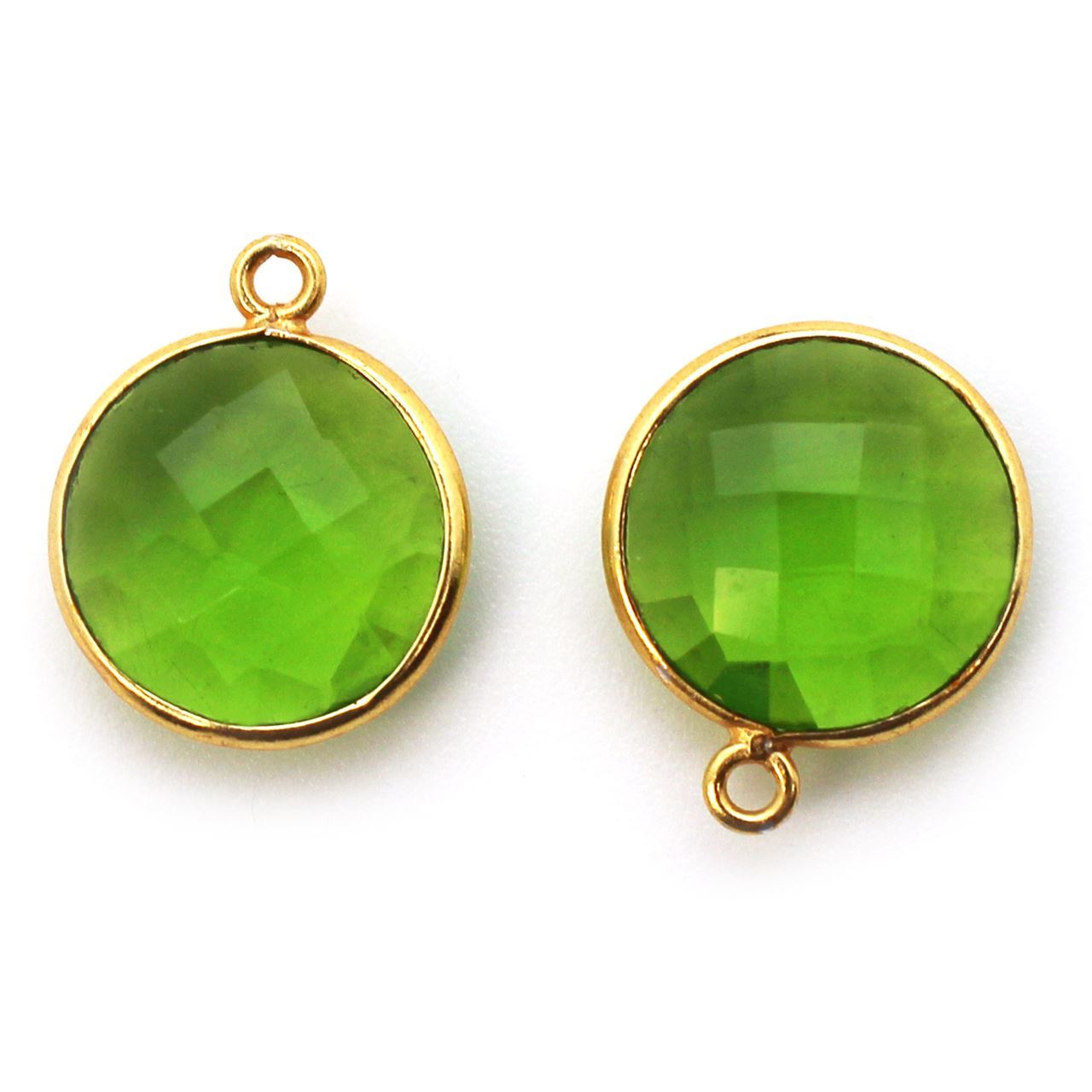 Stone: Peridot QuartzFrame Material: 18K Gold Over Solid Genuine .925 Sterling Silver. Shape: Faceted coin shape on both sides. Measurement: 19mm long, stone is 14mm. Weight: 2.0 grams per piece
