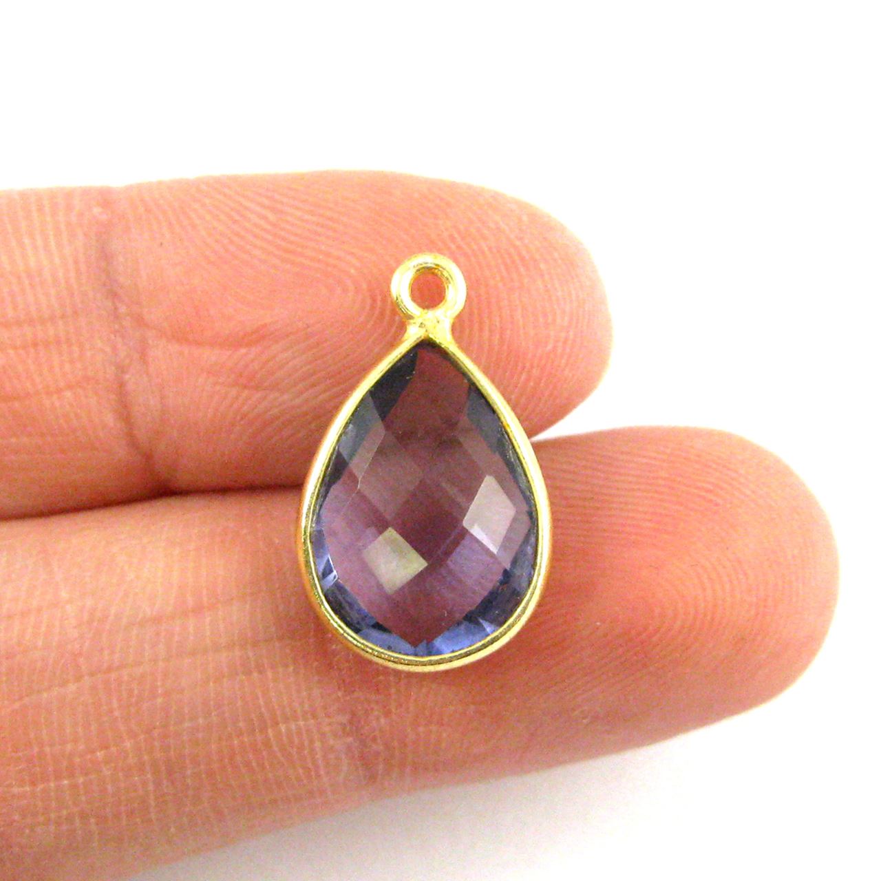 Add to compare list 22K Gold Over Sterling Silver Bezel Gemstone Pendant - 10x14mm Faceted Small Teardrop - Amethyst Quartz - February Birthstone SKU : 201107-AMQ Log In for Wholesale Prices