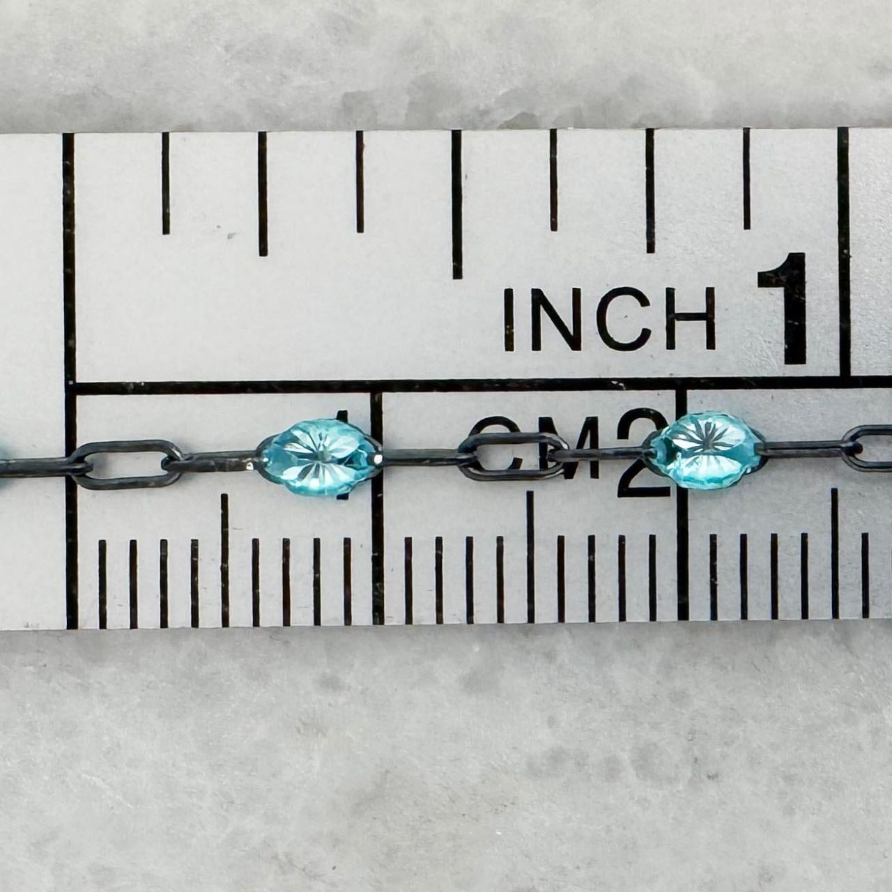 Best Seller Add to compare list 925 Sterling Silver Long Box -1+3 PaperClip Enamel Chain (Blue Sapphire Color)-4mm by 1.6mm (Sold per foot) SKU : 101079-BSH September birthstone blue sapphire color. 7 links per inch Log In for Wholesale Prices