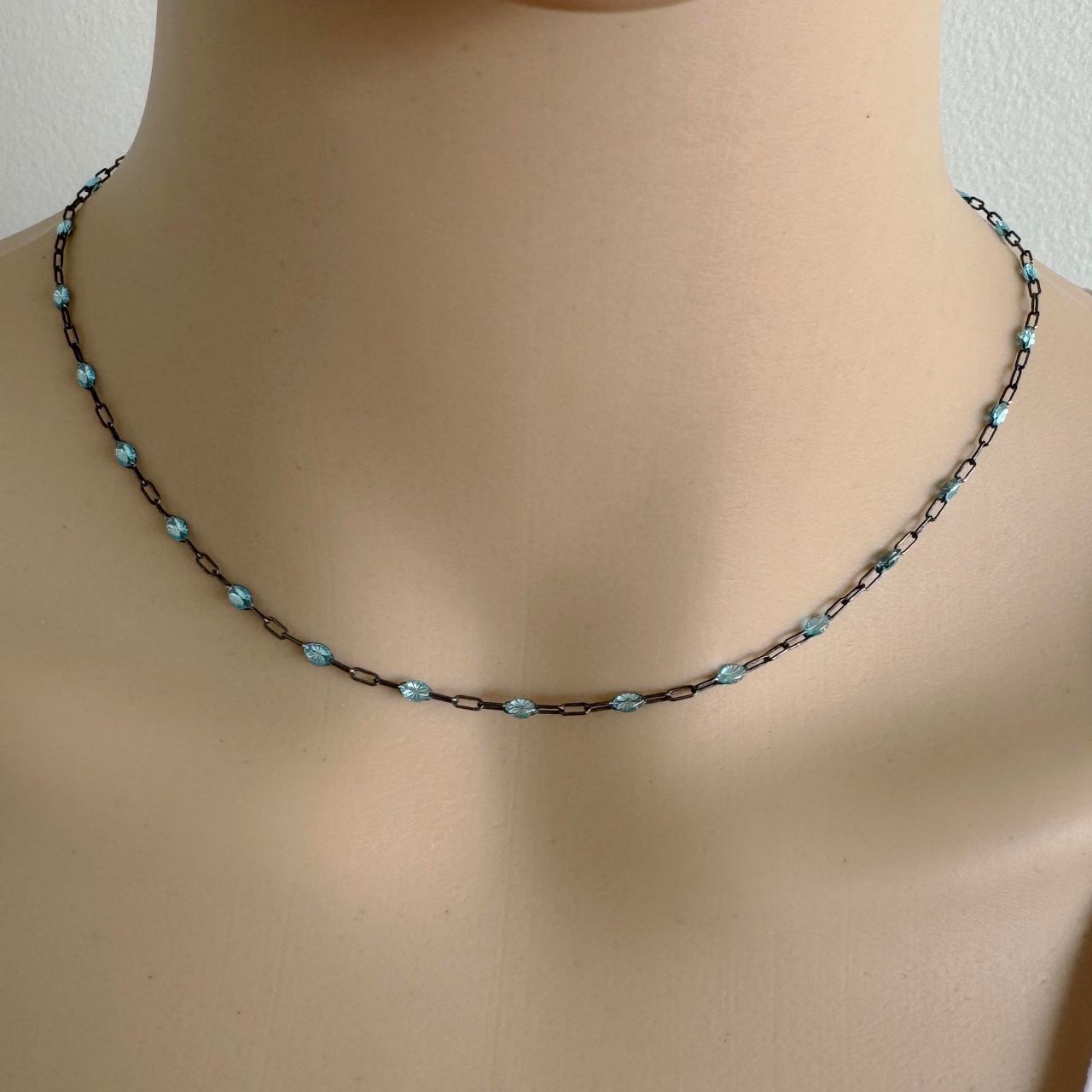 Best Seller Add to compare list 1/20 14K Gold Filled Long Box - 1+3 PaperClip Enamel Chain (Aqua Blue Color) - 3.6mm by 1.6mm (Sold per foot) SKU : 101079GF-AQU March Birthstone Color- Aqua Blue. 8 links per inch Log In for Wholesale Prices