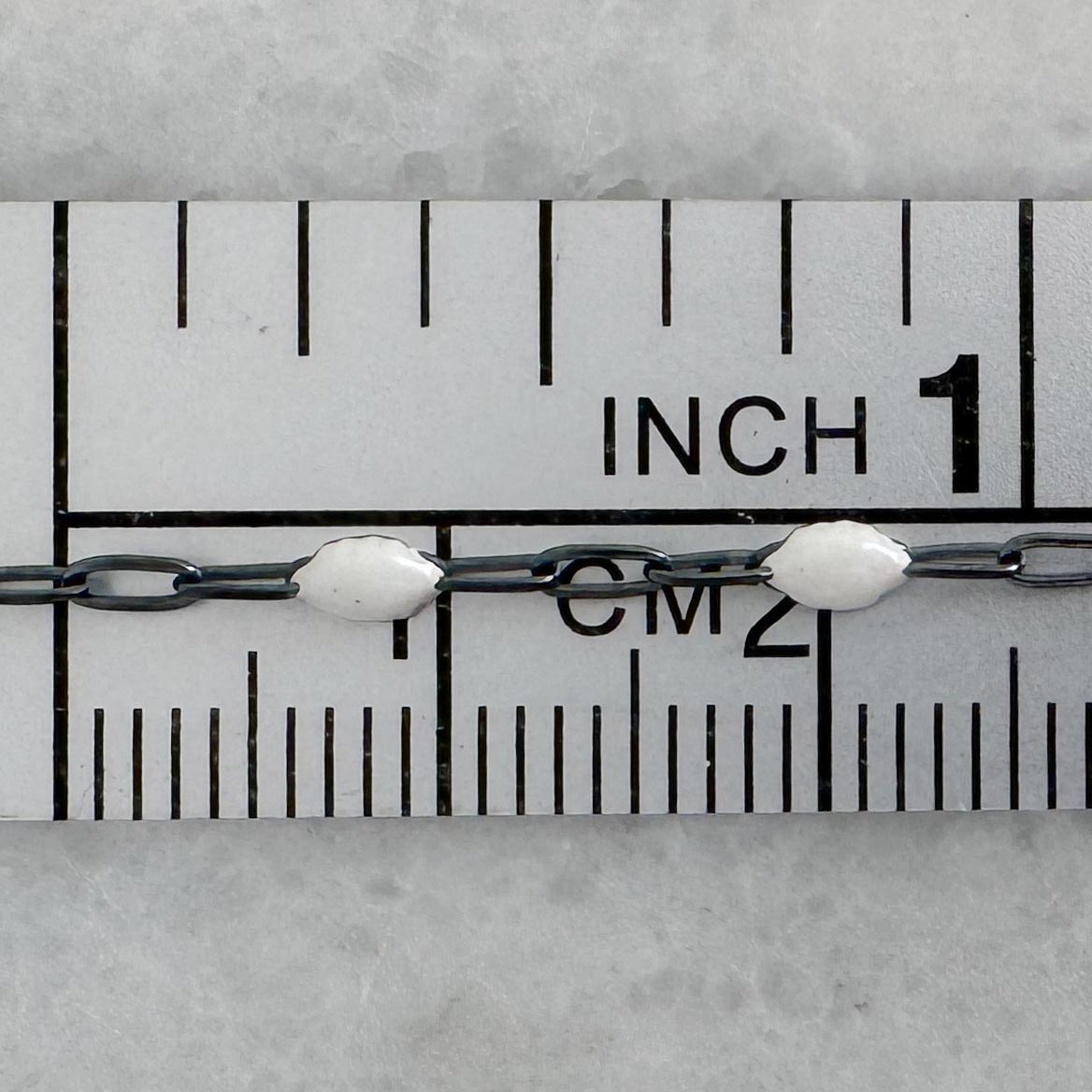 Best Seller Add to compare list 1/20 Gold Filled Long Box - 1+3 PaperClip Enamel Chain (Pearl White Color) - 3.6mm by 1.6mm (Sold per foot) SKU : 101079GF-WHT June Enamel Birthstone Pearl Color Original SKU: 101122-GF Paperclip chain 3.6mm long by 1.6mm wide 8 links per inch Log In for Wholesale Prices