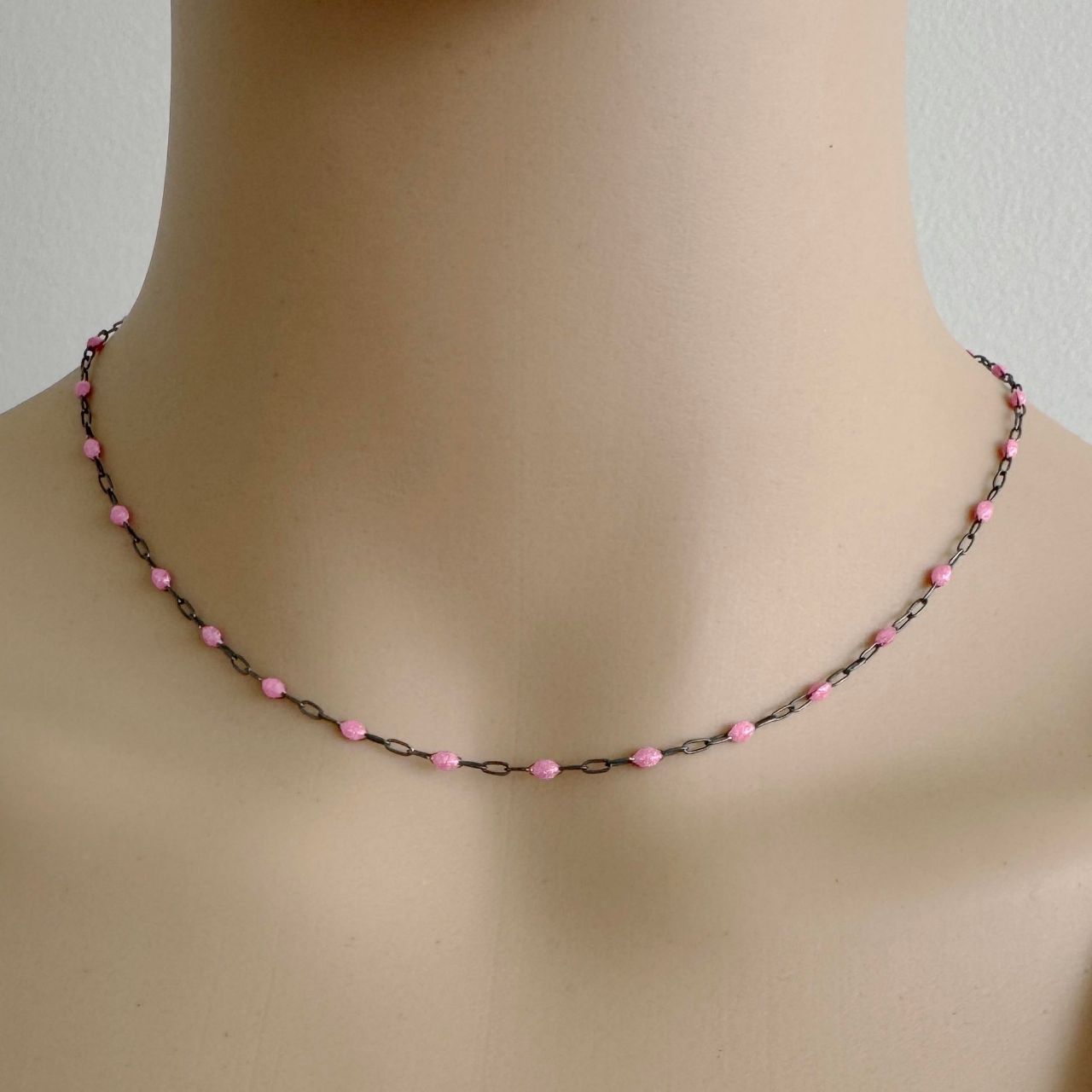 Best Seller Add to compare list 1/20 14K Gold Filled Long Box - 1+3 PaperClip Enamel Chain (Pink Color) - 3.6mm by 1.6mm (Sold per foot) SKU : 101079GF-PNK October Enamel Birthstone Pink Opal Color Original SKU: 101097-GF Paperclip chain 3.6mm long by 1.6mm wide 8 links per inch Log In for Wholesale Prices