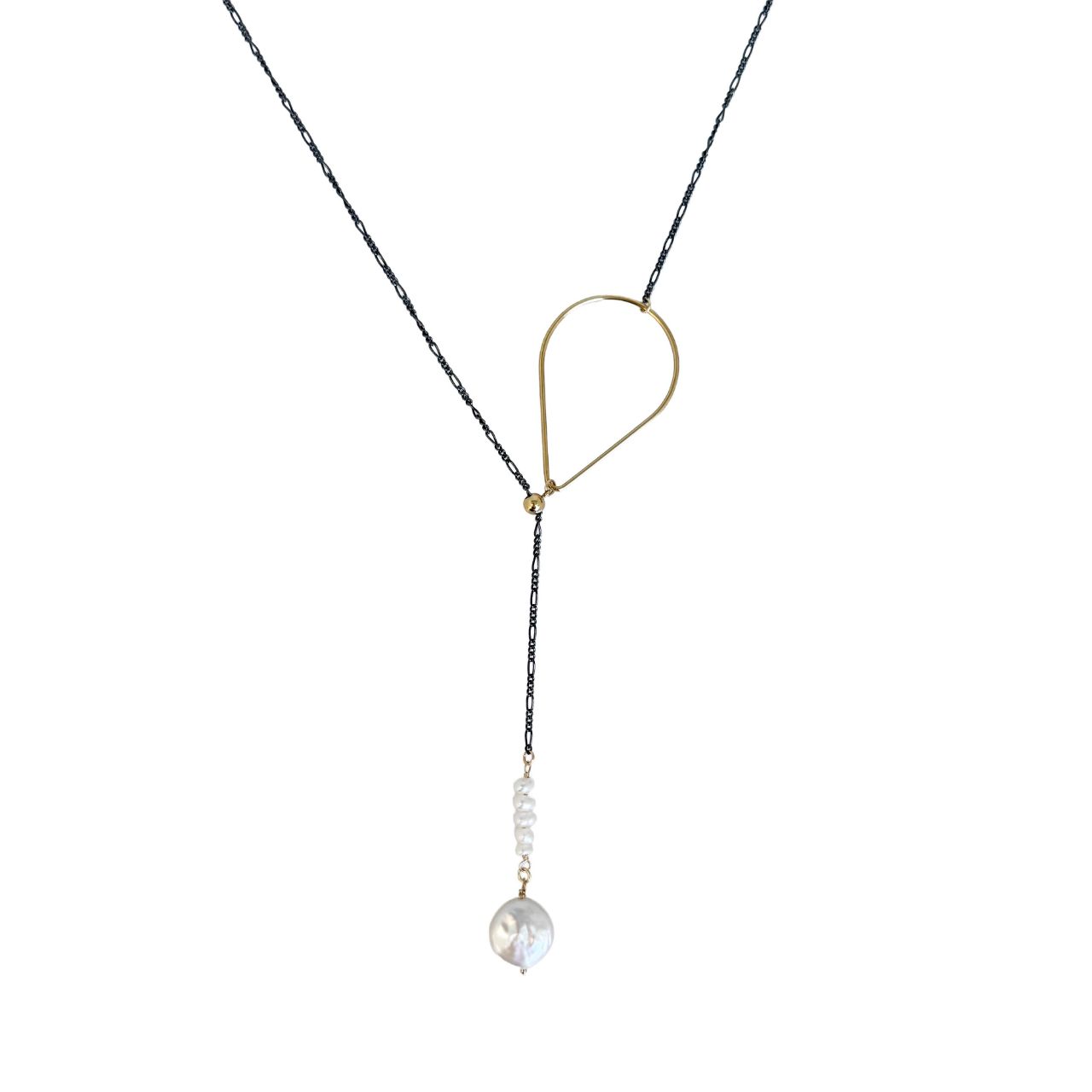 Mixed Metal- Oxidized 925 Sterling Silver and 1/20 14K Gold Filled. Adjustable with Sliding Bead up to 22"