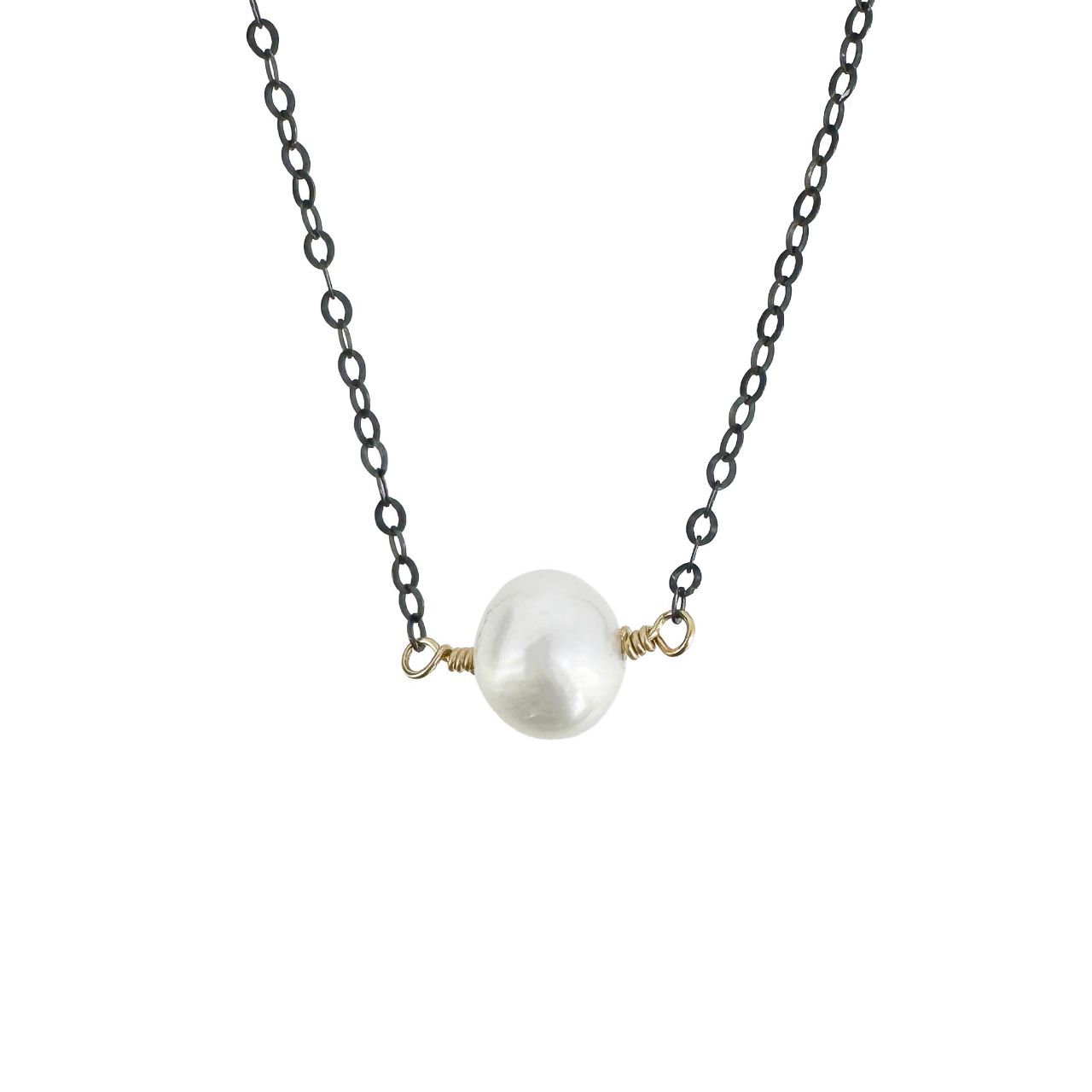 Mixed Metal- Oxidized 925 Sterling Silver and 1/20 14K Gold Filled. Adjustable from 16" to 18" in Length.
