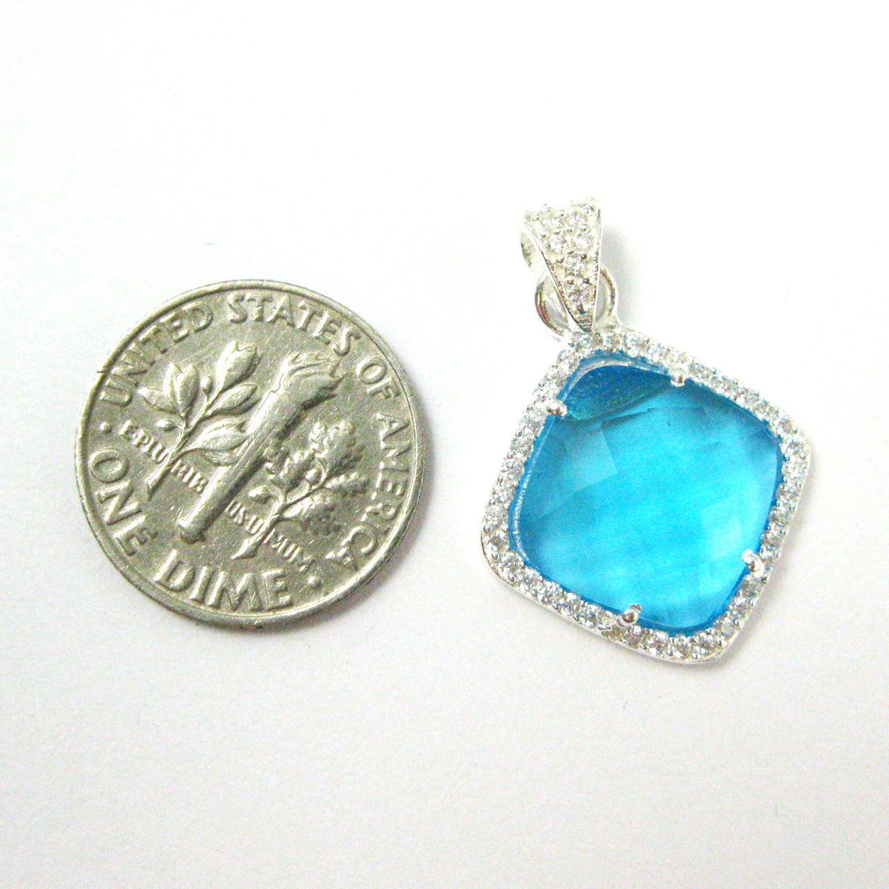 Add to compare list Sterling Silver Cubic Zirconia Pave Bezel Gemstone Pendant - 17mm Diamond Shape Faceted Stone - Green Onyx SKU : 201150-GON Log In for Wholesale Prices