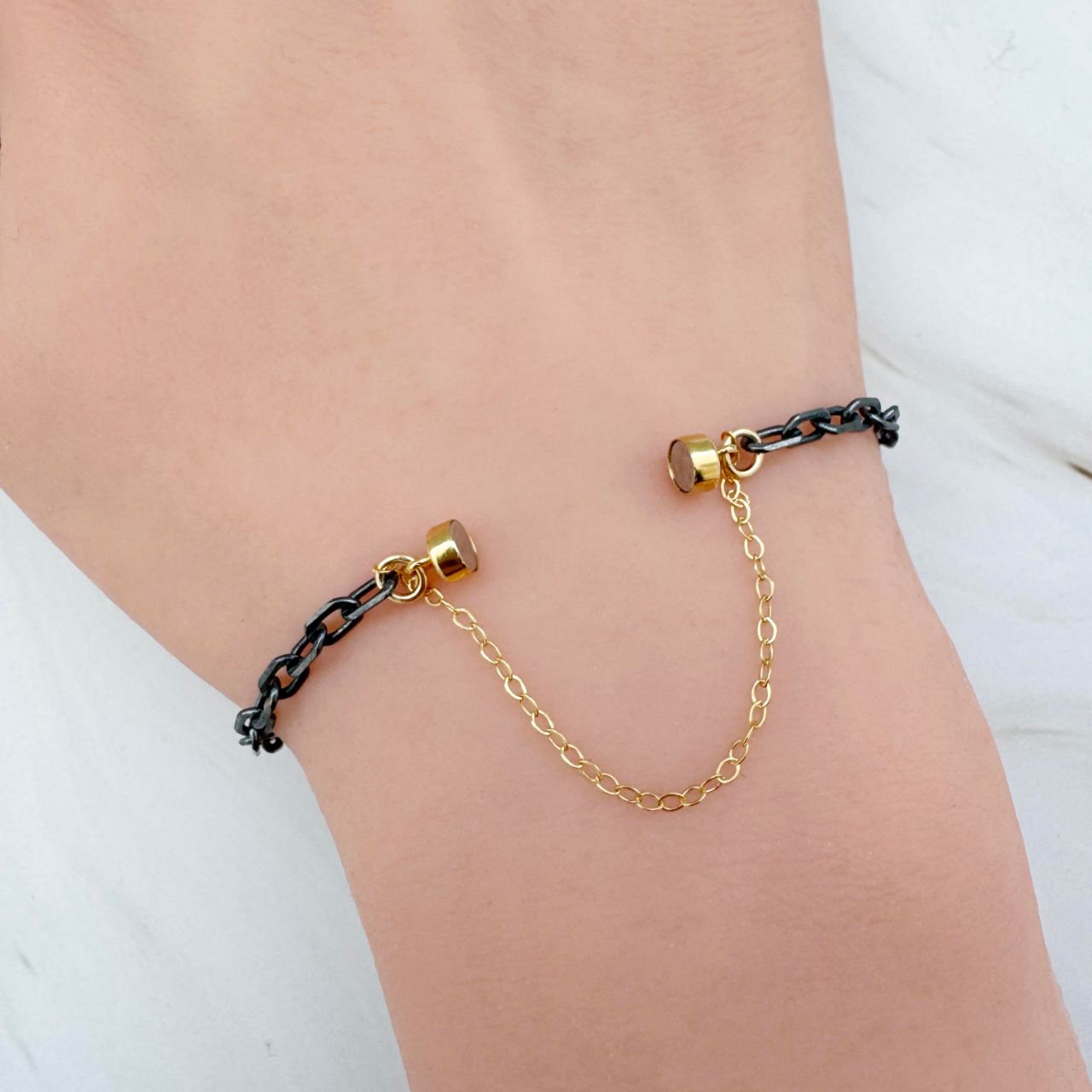 Mixed Metal- Oxidized Sterling Silver and 1/20 14K Gold Filled. 7" in length.