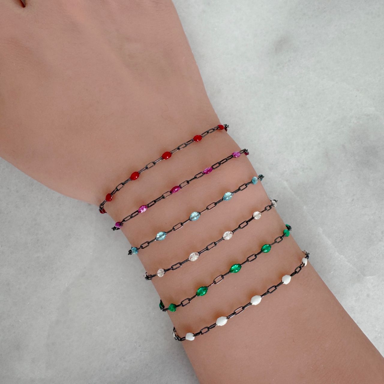 Style: Long Box Paperclip Chain with Enamel Links