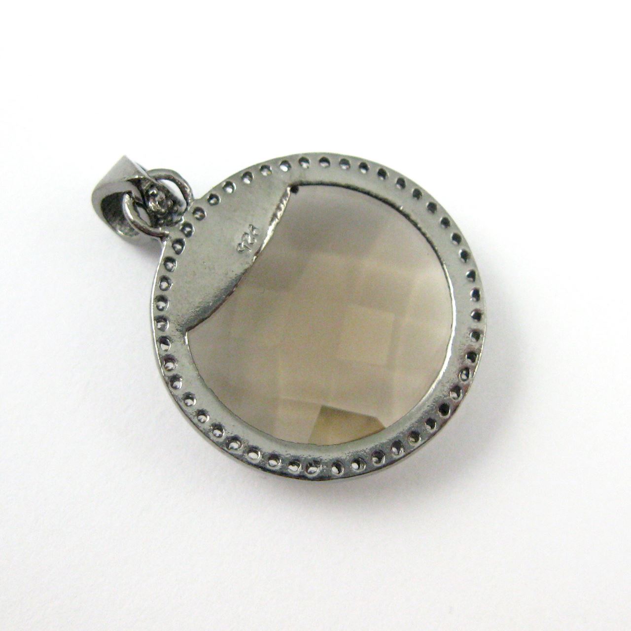 Add to compare list Oxidized Sterling Silver Cubic Zirconia Pave Bezel Gemstone Pendant - 21mm Round Shape Faceted Stone - Opalite Quartz SKU : 201162-OPL Log In for Wholesale Prices