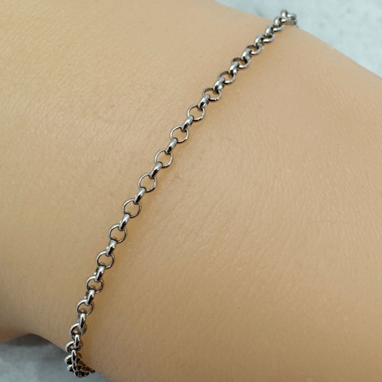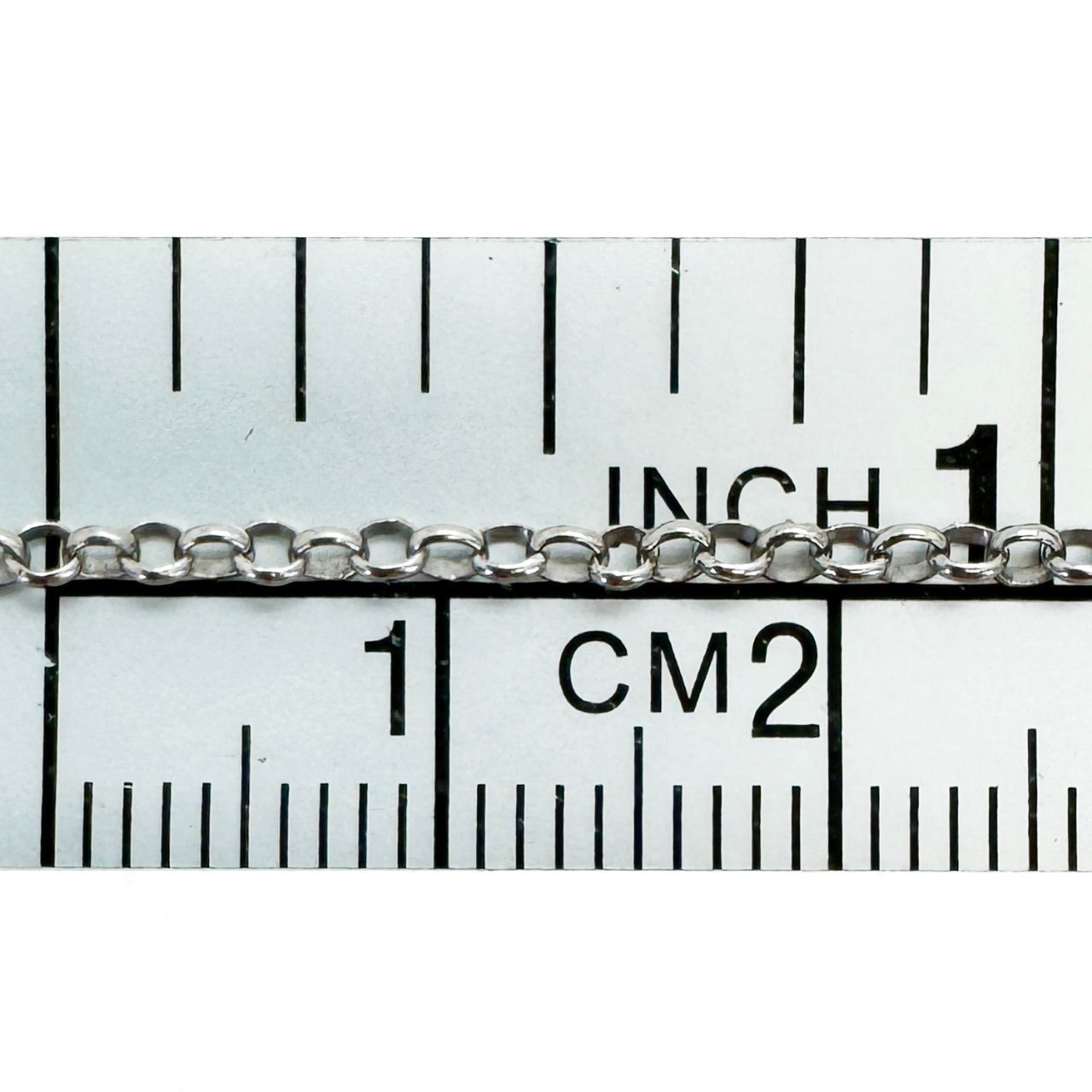 Add to compare list Rhodium Plated Sterling Silver Bulk Chain - 1.3mm Rolo Chain (sold per foot) SKU : 101016-RH OD-1.3mm, About 25 links per inch Log In for Wholesale Prices