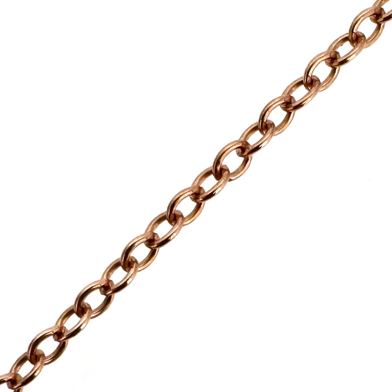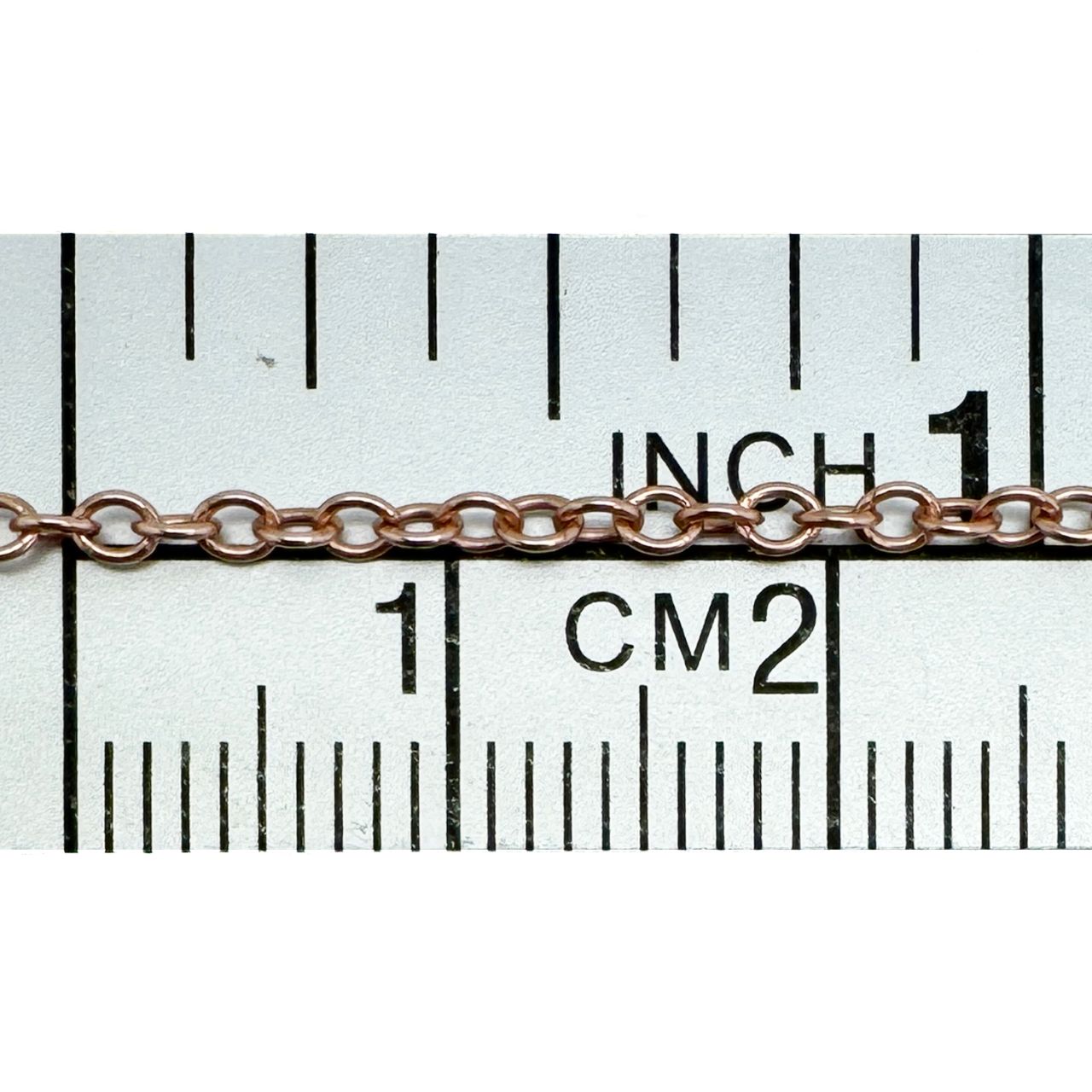 Add to compare list Rose Gold Plated Sterling Silver Bulk Chain - 1.3x2mm Small Round Cable Chain (sold per foot) SKU : 101020-RG OD-2mm long by 1.3mm wide 18 links per inch Log In for Wholesale Prices