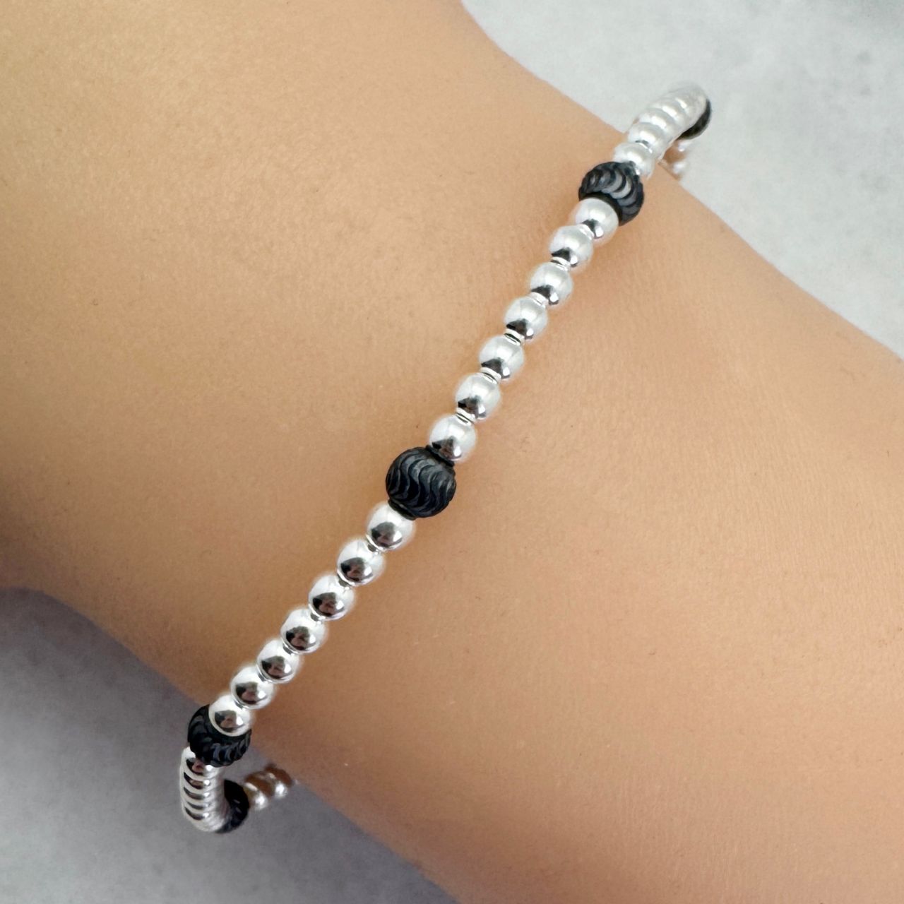 Add to compare list 925 Sterling Silver 2mm Smooth Beaded Stretchy Bracelet with Natrual Gemstone Beads SKU : 721006 Choose from 12 Different Gemstones! 2mm Silver Beads with 2-3mm Natural Gemstone Beads Available Lengths: 6.5" or 7" Log In for Wholesale Prices