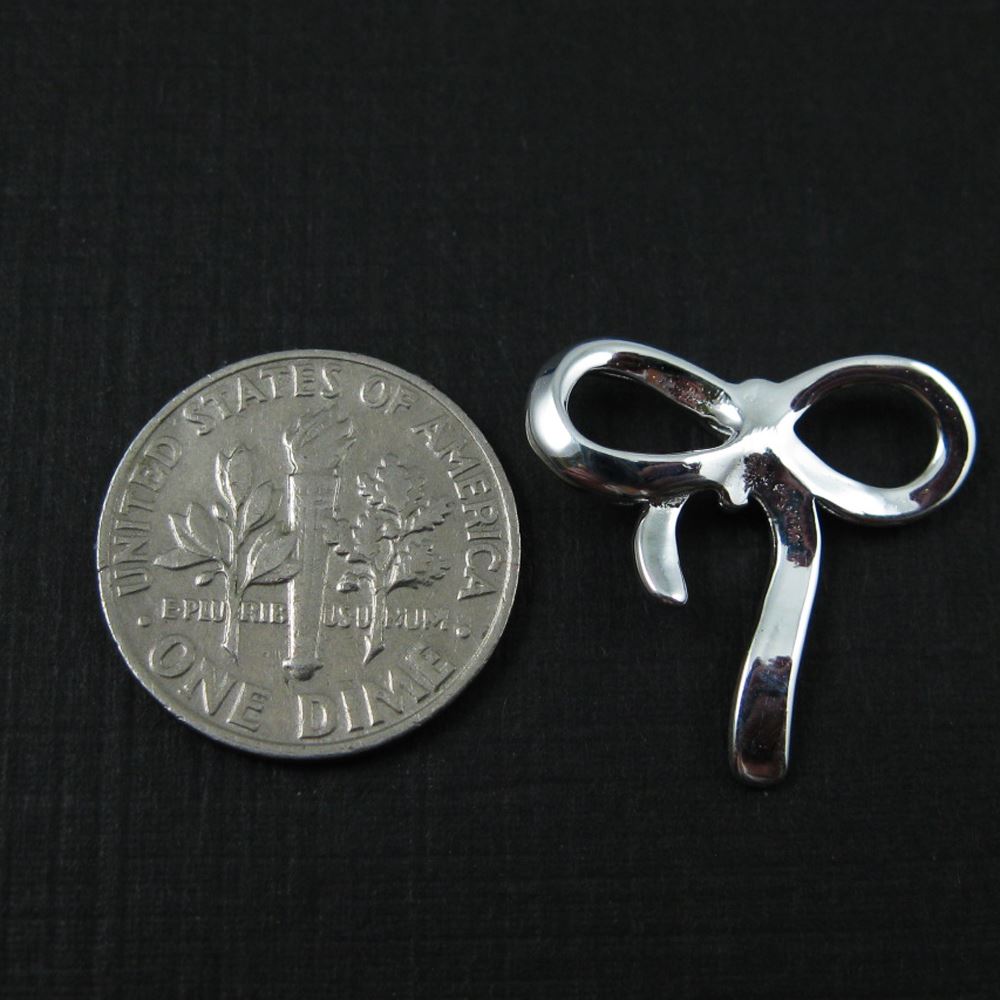 Material: Solid Genuine .925 Sterling Silver. Shape: Bow charm connectorMeasurement: 20 mm long, 19 mm wide, 3 mm thick. Weight: 1.3 grams per piece.