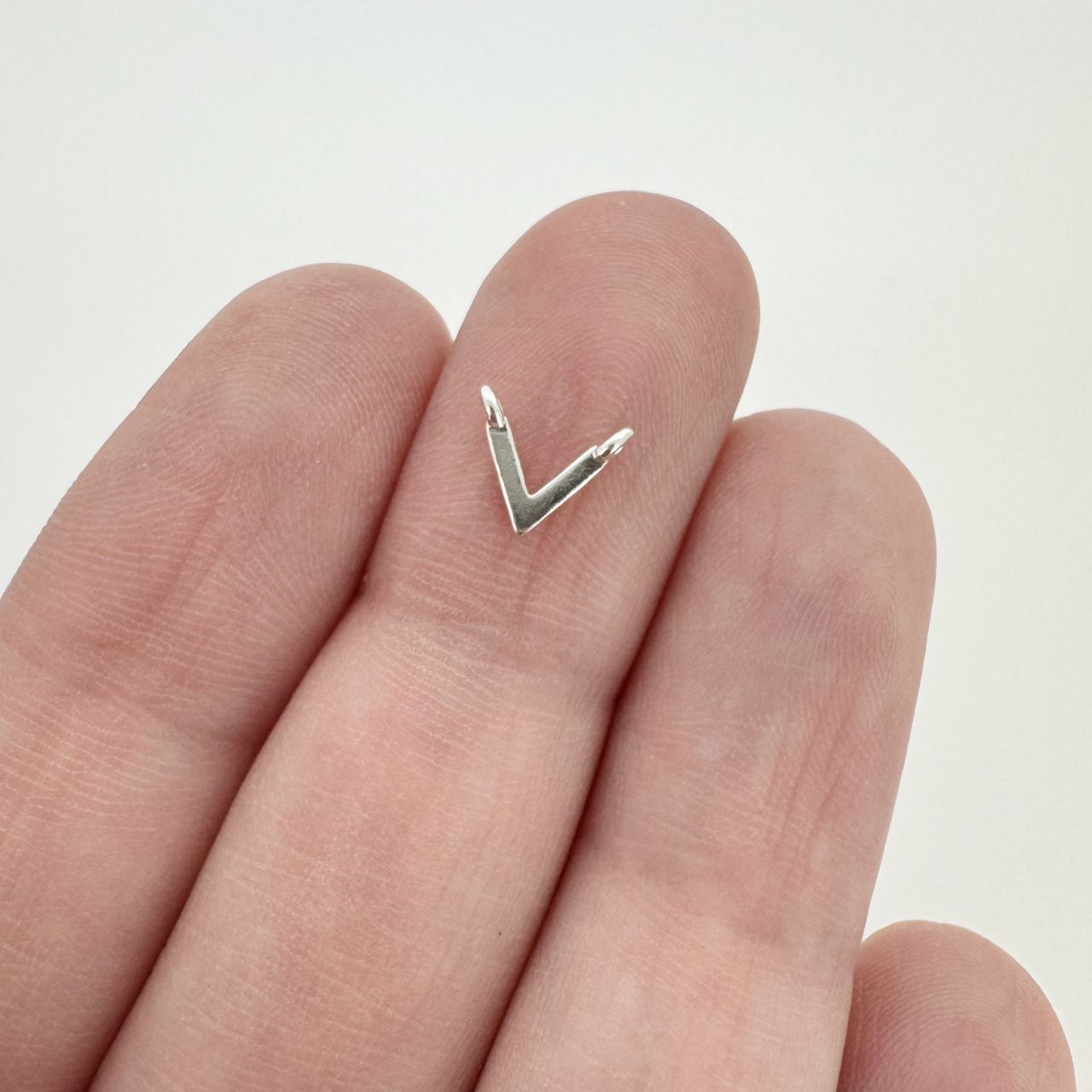 Material: Solid Genuine .925 Sterling SilverShape: Chevron Triangle Point Connector CharmMeasurement: About 6.7mm long, 7.6mm wide, 0.8 mm thick. 2mm Connector ring, 1mm inner diameter ( suitable with 19 gauge - 0.9mm- or smaller rings/wire)Weight: About 0.43 grams per 5 pieces.Quantity: 1 charm