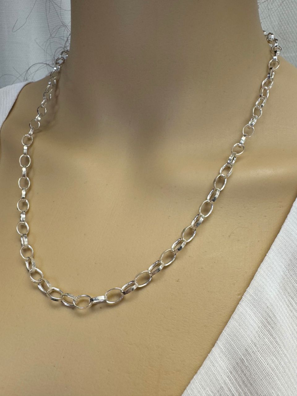 Add to compare list Oxidized 925 Sterling Silver Finished Chain - Chunky Flat Oval Rolo Chain SKU : 601004OX Lengths: 7" - 36" Log In for Wholesale Prices