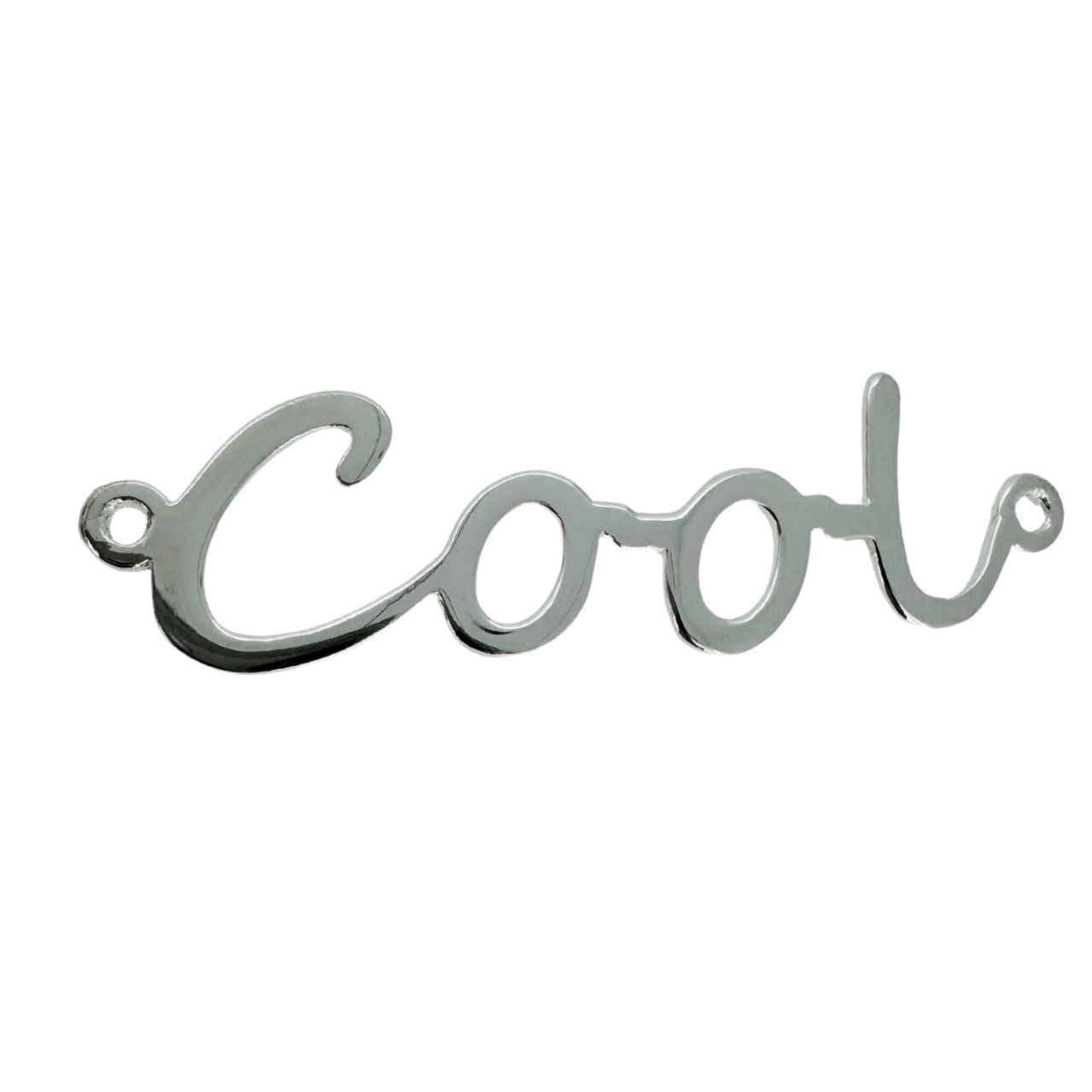 Material: Solid Genuine .925 Sterling Silver. Shape: Cool, Cool written in scriptMeasurement: 34mm by 10mm, .7mm thick, letters are 1.2-1.4mm thick. 19 gauge jump rings or smaller will be suitable for the connector rings. Quantity: per 1 piece