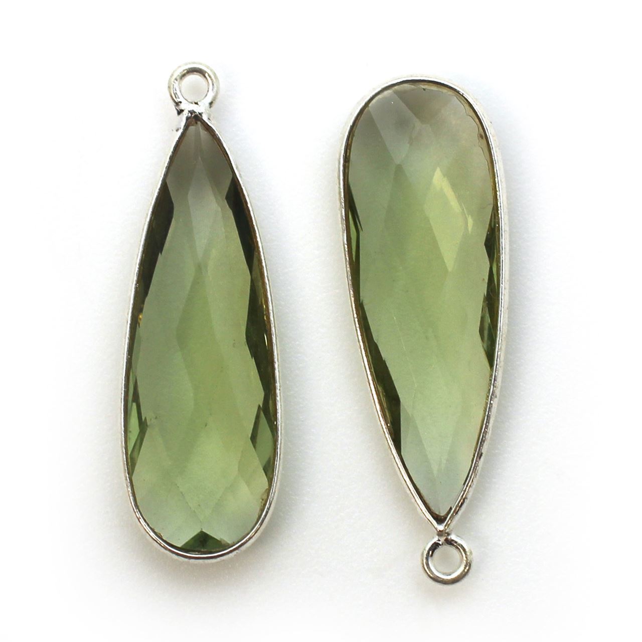 Stone: Green Amethyst QuartzFrame Material: Solid Genuine .925 Sterling Silver. Shape: Elongated Faceted pear shape on both sides. Measurement: 34mm long 11mm wide, stone size is 30x10mm. Weight: Ave. 2.75 grams per piece.Quantity: 1 pc