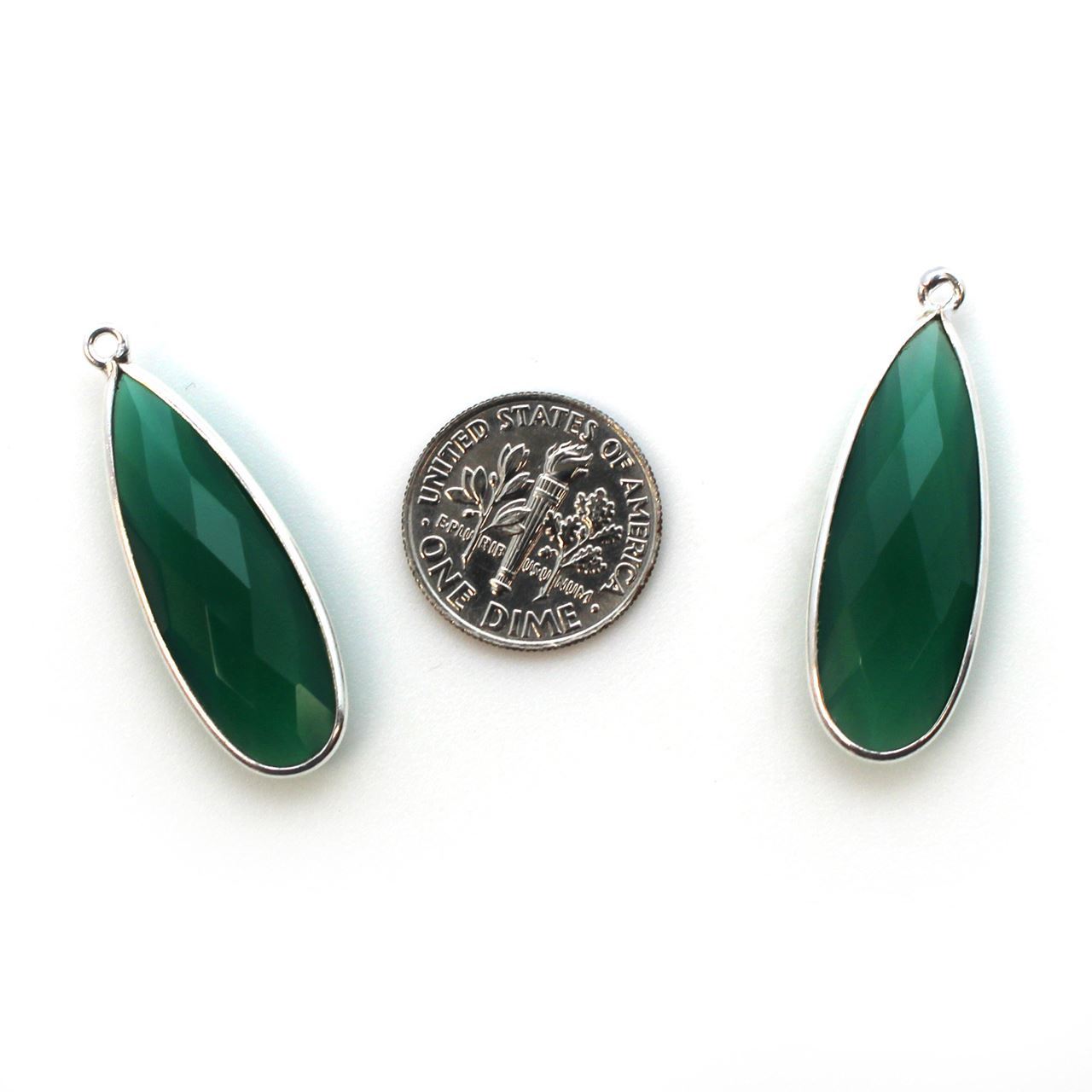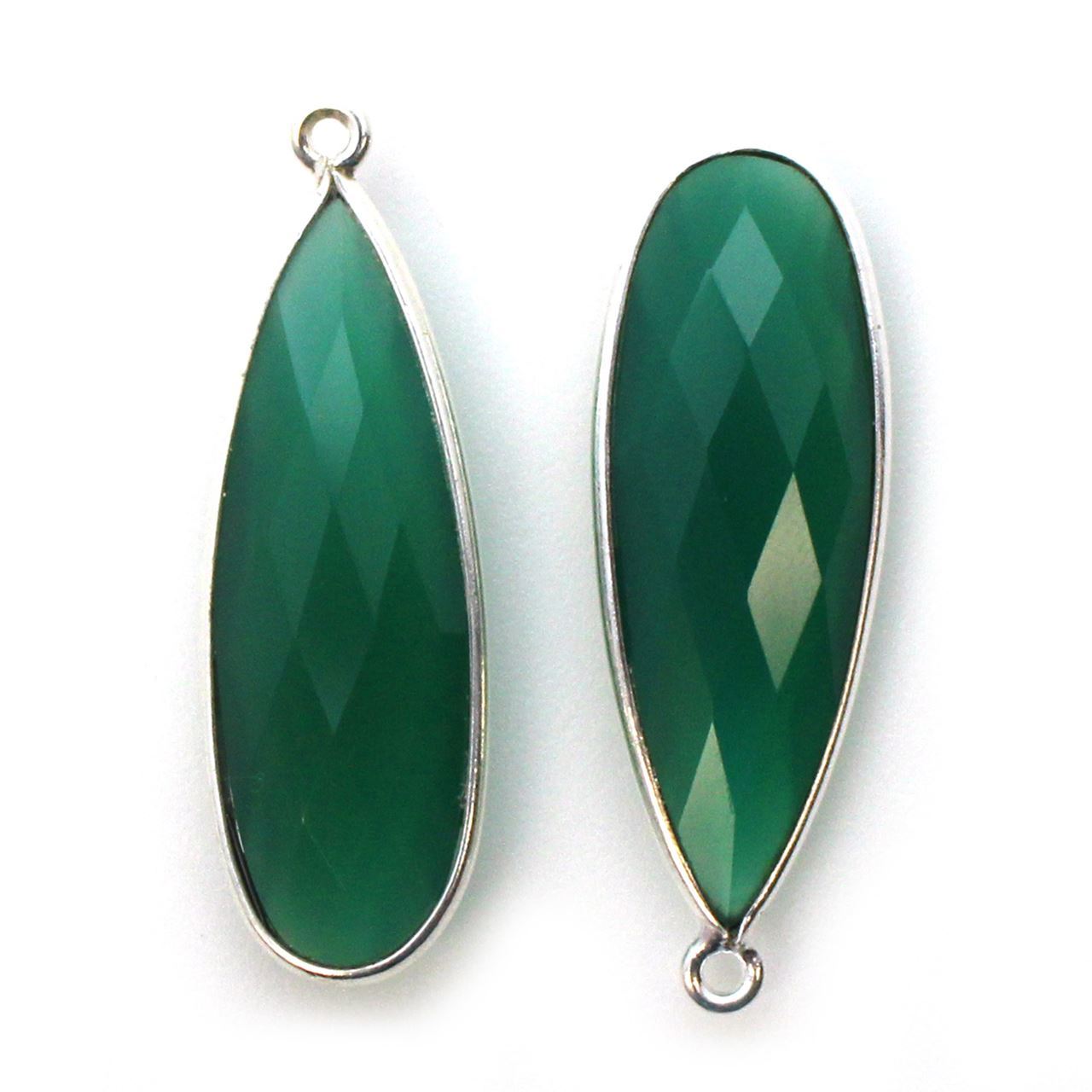 Stone: Green OnyxFrame Material: Solid Genuine .925 Sterling Silver. Shape: Elongated Faceted pear shape on both sides. Measurement: 34mm long 11mm wide, stone size is 30x10mm. Weight: Ave. 2.75 grams per piece.Quantity: 1pc
