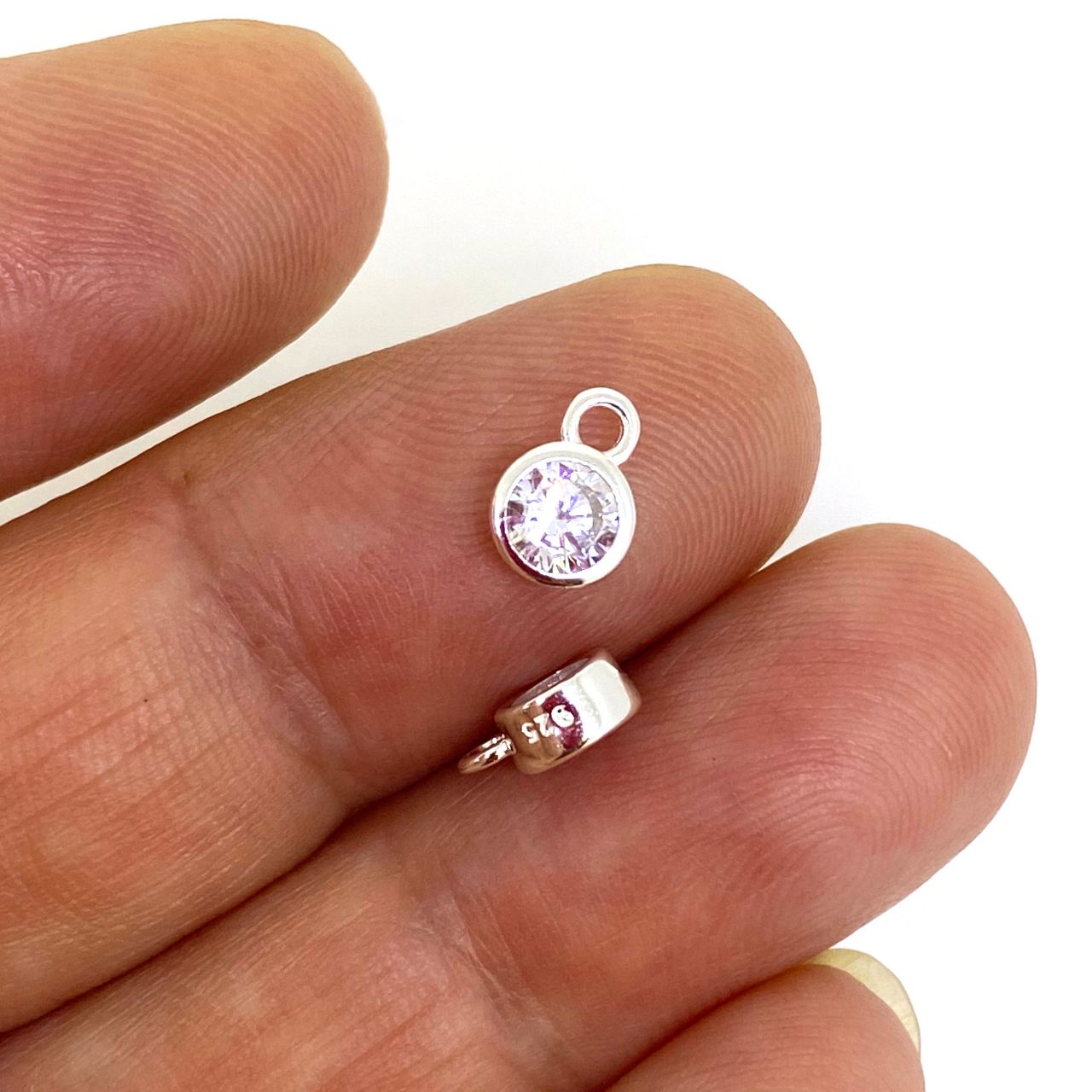 Add to compare list Gold over Sterling Silver Fancy Bezel Birthstone Charm Pendant - 4mm Tiny Round Charm with CZ Stone Grade AAAA SKU : 201035VM High-quality AAAA CZ stones, the setting is thick and fancy looking, perfect for high-end jewelry lines and permanent jewelry. 4mm CZ stone, 5mm including bezel, Top ring is 2.8mm Log In for Wholesale Prices