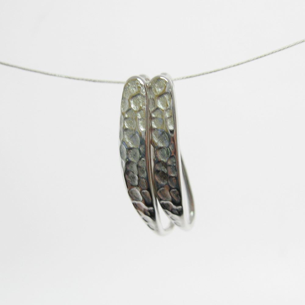 Material: 925 Sterling Silver, hammered silverShape: Oval rings, front profile, is thick and hammeredComponent size: 24mm long x 4mm wide, inside ring is 3mm. The wire is 19 gauge, 0.91 mm
