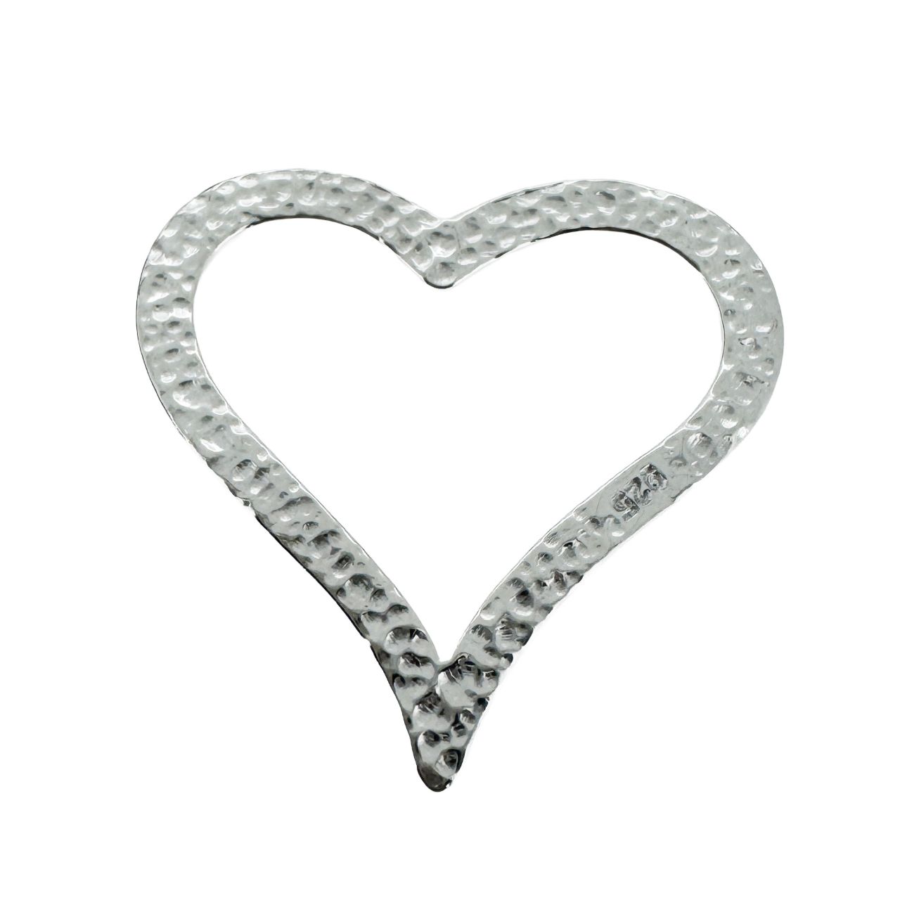 Material: Solid Genuine .925 Sterling Silver. Shape: Hammered heart charm, connector, Large symmetrical heartMeasurement: 27mm long, 29mm wide, 2.5 by 0.8mm thicknessQuantity: 1 pc